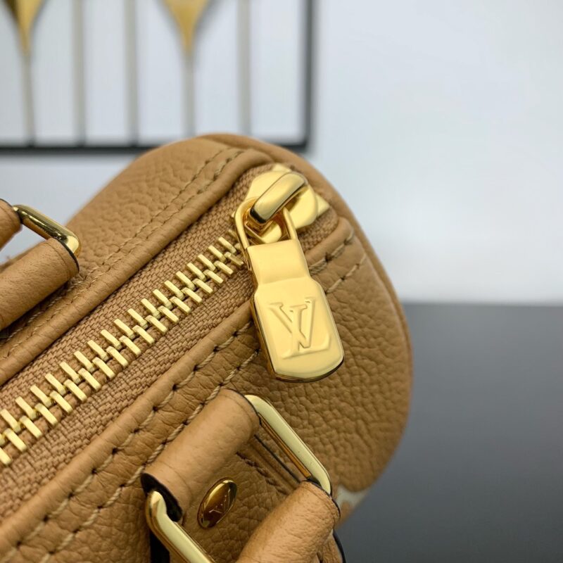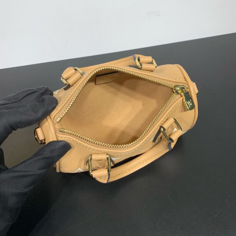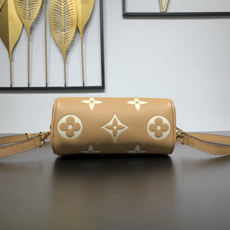 Style number: M46355 The Papillon BB handbag is made of Monogram Empreinte leather depicting the Monogram print, recreating the silhouette of the classic Papillon handbag in a pocket size. The detachable shoulder strap and rolled leather handle allow for more ways to carry it. 17x10x8.5cm (length x height x width)
