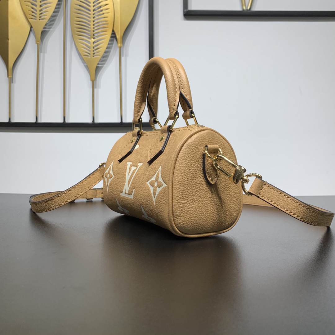 Style number: M46355 The Papillon BB handbag is made of Monogram Empreinte leather depicting the Monogram print, recreating the silhouette of the classic Papillon handbag in a pocket size. The detachable shoulder strap and rolled leather handle allow for more ways to carry it. 17x10x8.5cm (length x height x width)