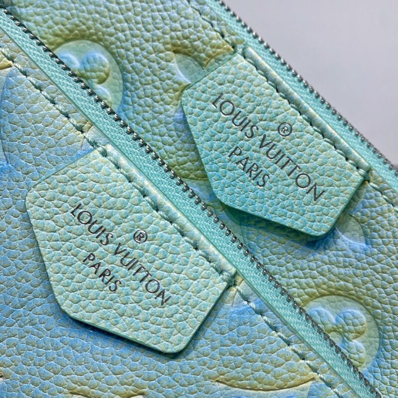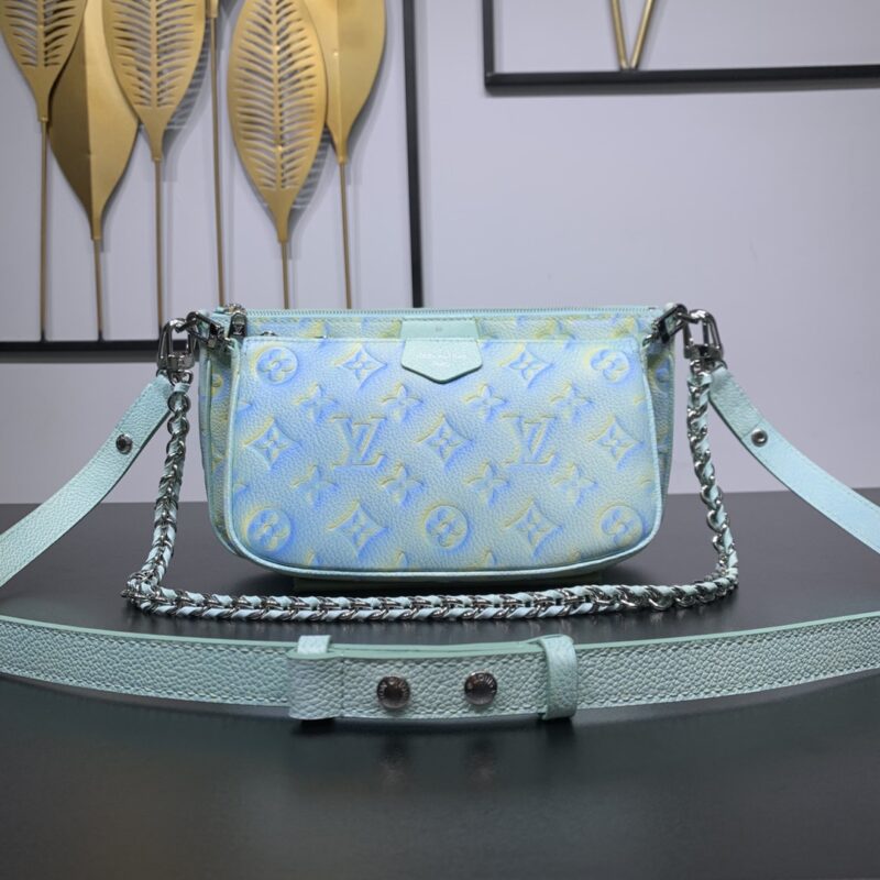 Style number: M46180 The Multi Pochette Accessoires bag in Monogram Empreinte embossed leather, rendered iridescent with a three-step spray-painting technique. The 2-in-1 design accommodates on-the-go needs with a detachable clutch, chain and adjustable shoulder strap. 24 x 13.5 x 4 cm (length x height x width)