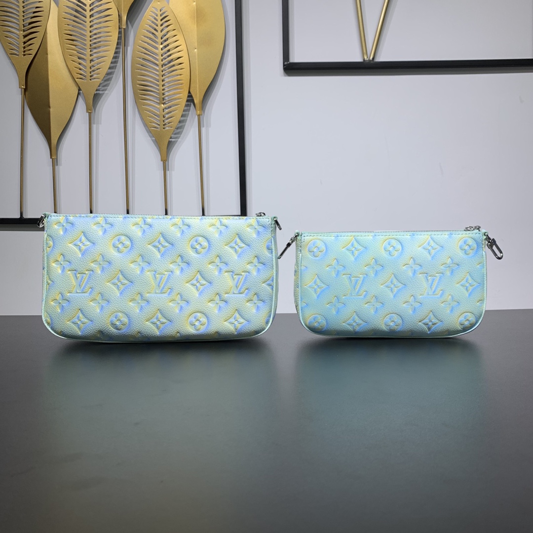 Style number: M46180 The Multi Pochette Accessoires bag in Monogram Empreinte embossed leather, rendered iridescent with a three-step spray-painting technique. The 2-in-1 design accommodates on-the-go needs with a detachable clutch, chain and adjustable shoulder strap. 24 x 13.5 x 4 cm (length x height x width)