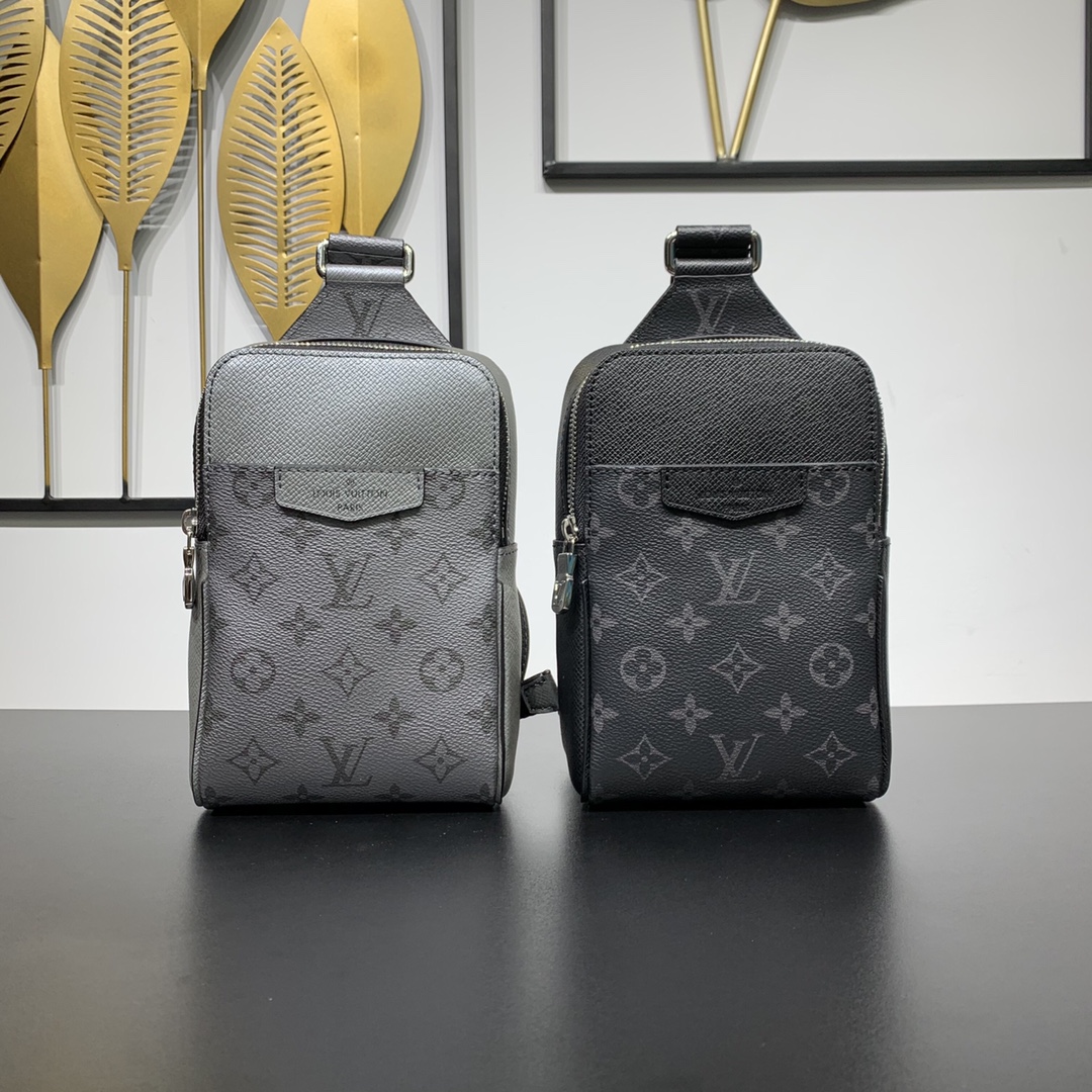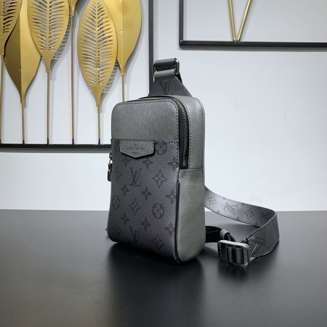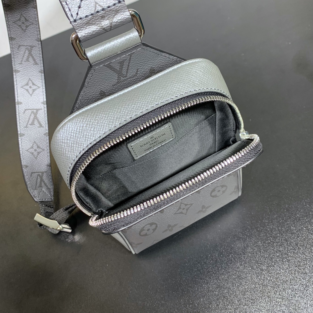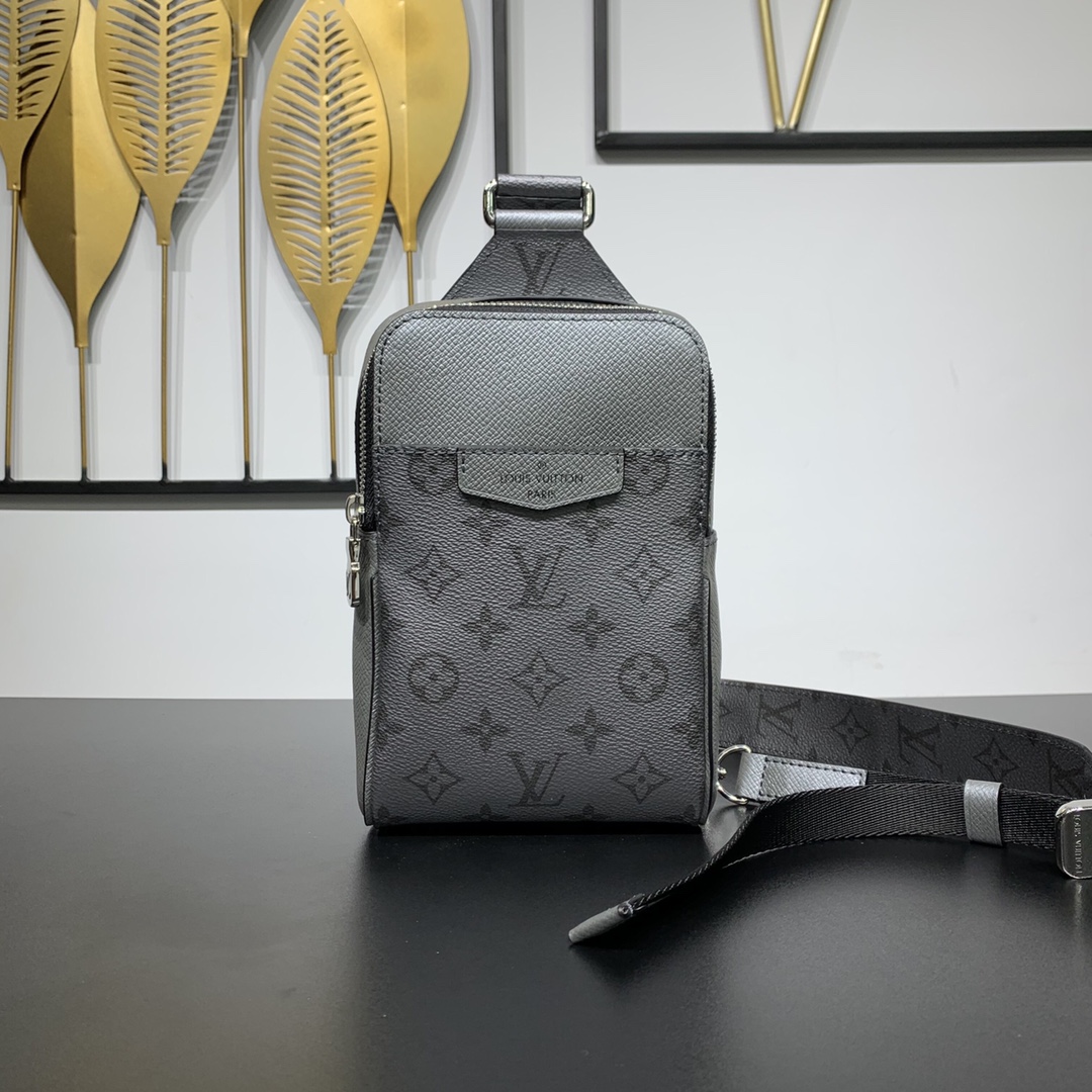 Style number: M30833 The Taigarama Outdoor shoulder bag in Taiga leather and Monogram canvas keeps your phone, keys, headphones and credit cards with you. Adjustable straps allow for left or right shoulder carry. 13 x 21 x 5 cm (length x height x width)