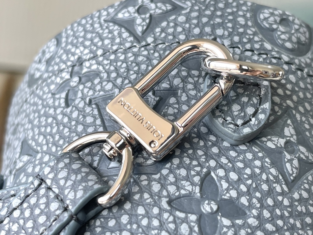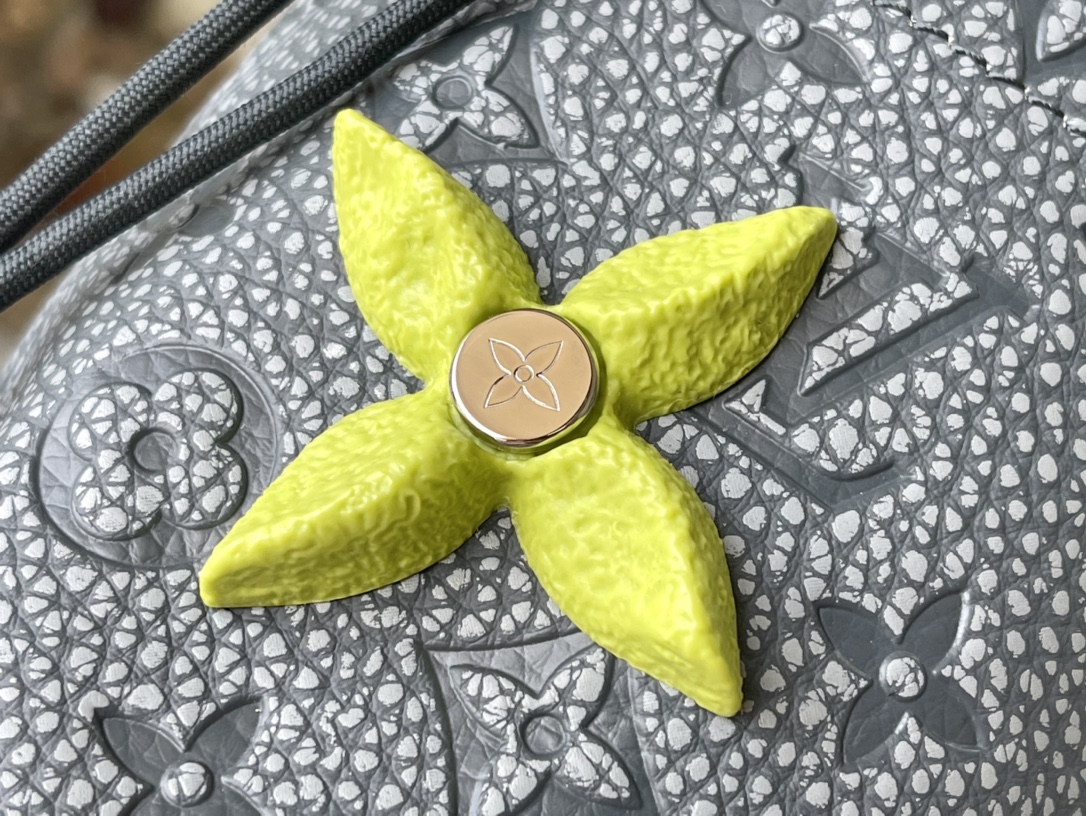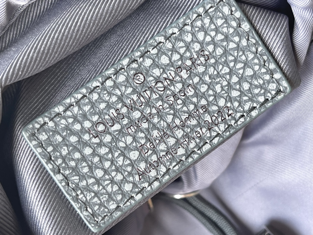 The gray full-leather Chalk Pouch handbag debuted in the 2022 autumn winter climbing style collection, showing the youthful vitality praised by designer Virgil Abloh. Taurillon leather is embossed with the classic Monogram pattern, and the climbing-inspired decoration pops up in different colors. The compact design makes it easy to carry personal items with you. detailed features 12.5 x 17 x 12.5 cm (length x height x width)