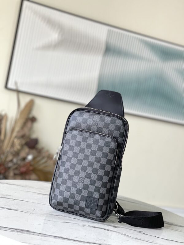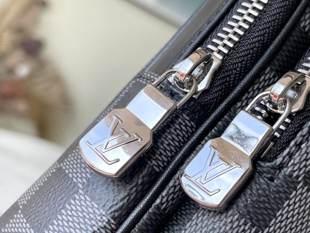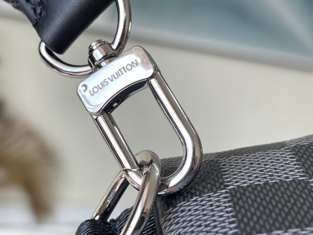 Haig chest bag fanny shoulder bag Graphite canvas fabric is the perfect companion for urban life: small and stylish, showing a casual and uninhibited attitude. The “smart” shoulder strap is designed to fit on the left or right shoulder. The shape design improves the comfort of carrying; the double zipper closure design ensures that valuables are safely placed. Damier Graphique coated canvas, fabric lining, silver-tone metal hardware, adjustable woven shoulder strap, 1 pair of bag hooks, easy to carry on the left or right shoulder, double zipper closure design, zippered exterior pocket, 2 interior patch pockets. Pure steel hardware with solid original fabric, size 21×31×9cm
