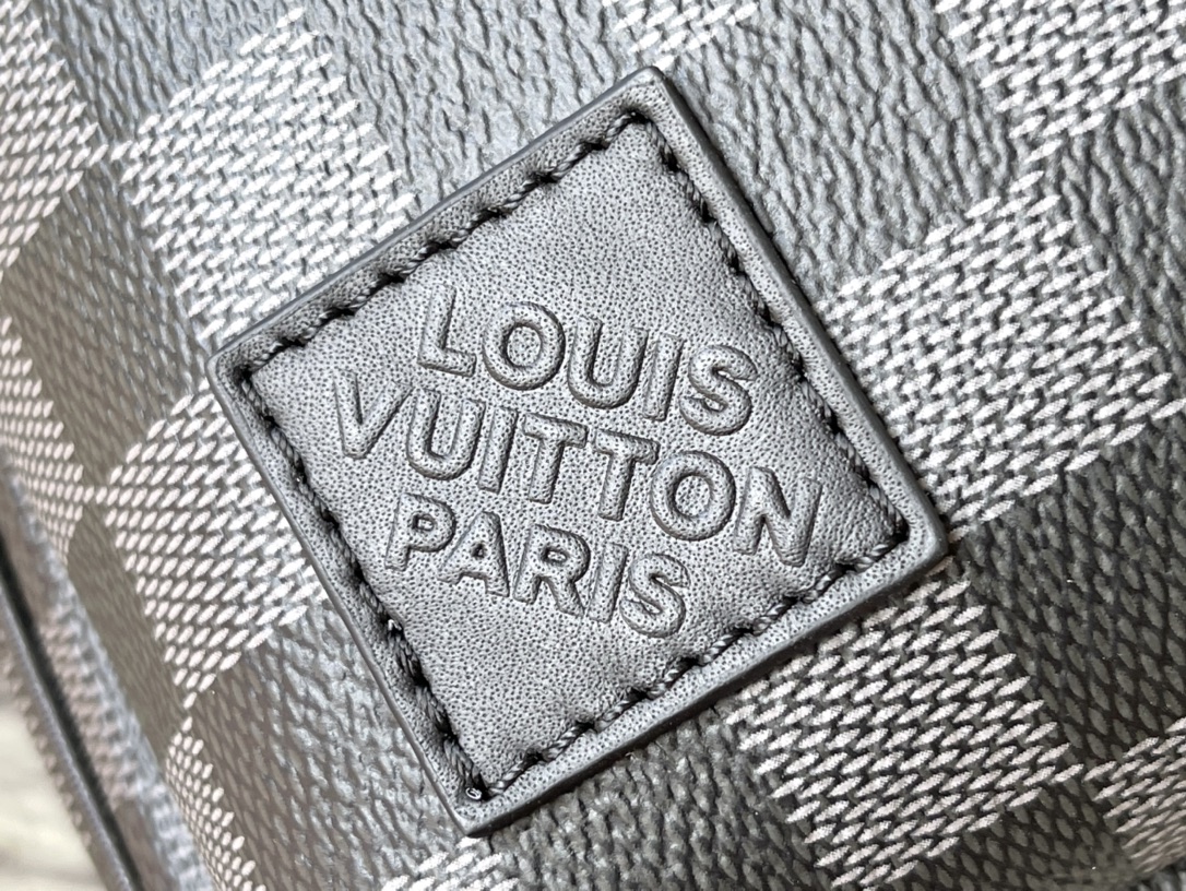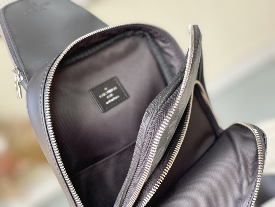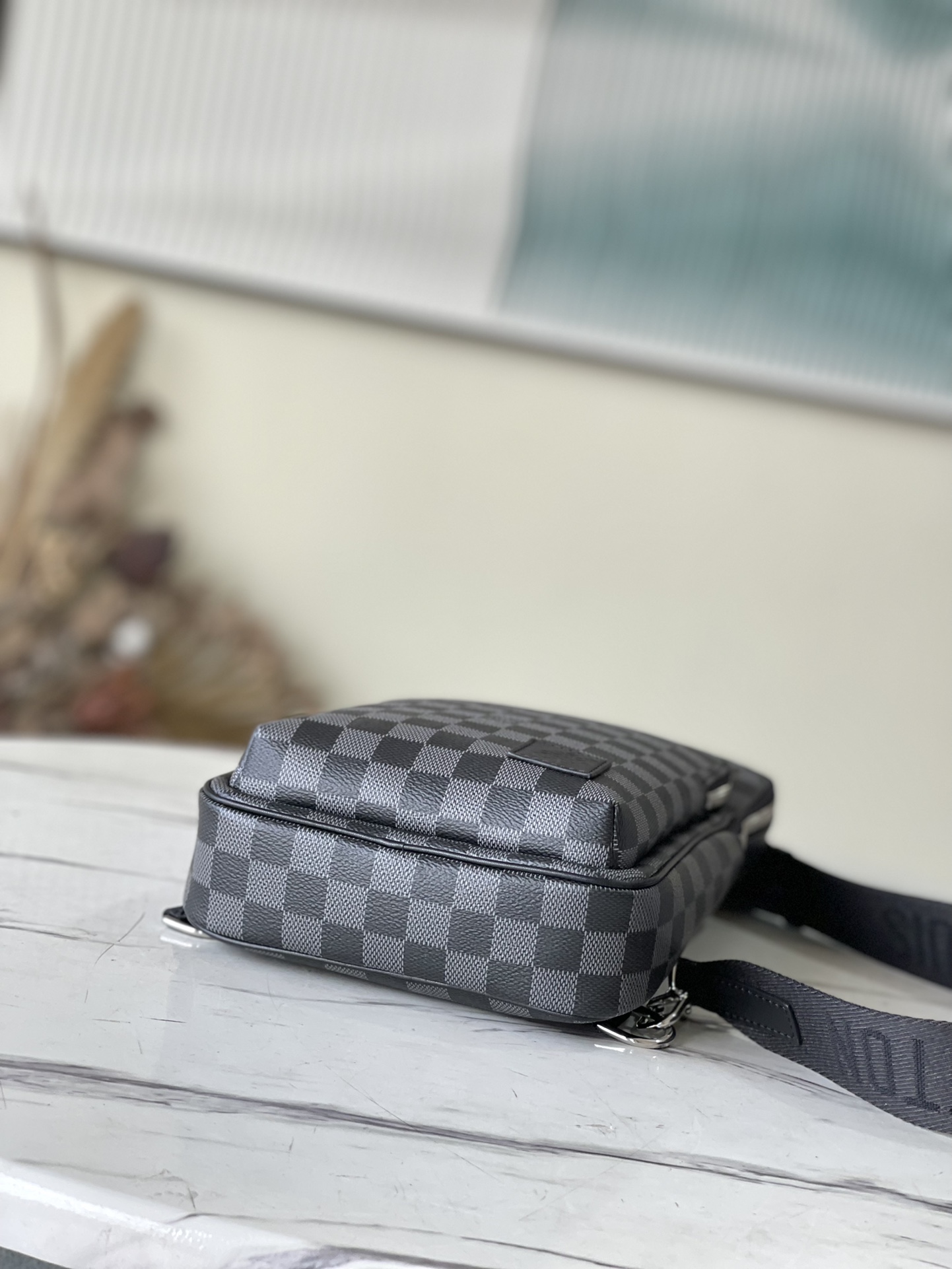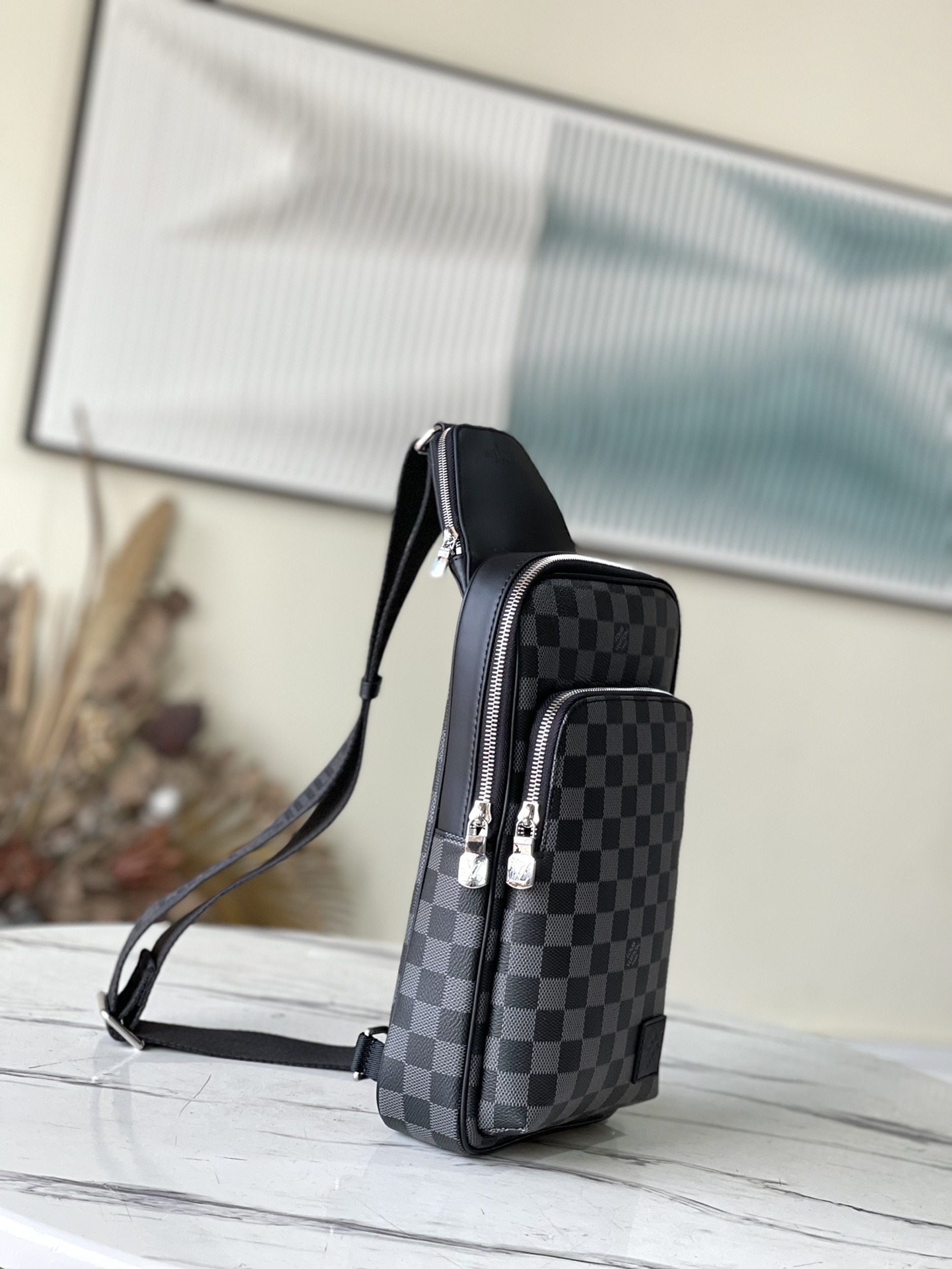Haig chest bag fanny shoulder bag Graphite canvas fabric is the perfect companion for urban life: small and stylish, showing a casual and uninhibited attitude. The “smart” shoulder strap is designed to fit on the left or right shoulder. The shape design improves the comfort of carrying; the double zipper closure design ensures that valuables are safely placed. Damier Graphique coated canvas, fabric lining, silver-tone metal hardware, adjustable woven shoulder strap, 1 pair of bag hooks, easy to carry on the left or right shoulder, double zipper closure design, zippered exterior pocket, 2 interior patch pockets. Pure steel hardware with solid original fabric, size 21×31×9cm