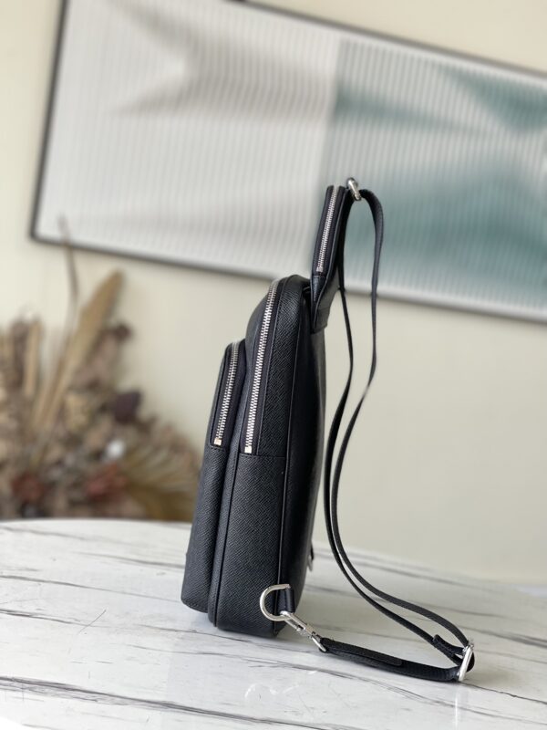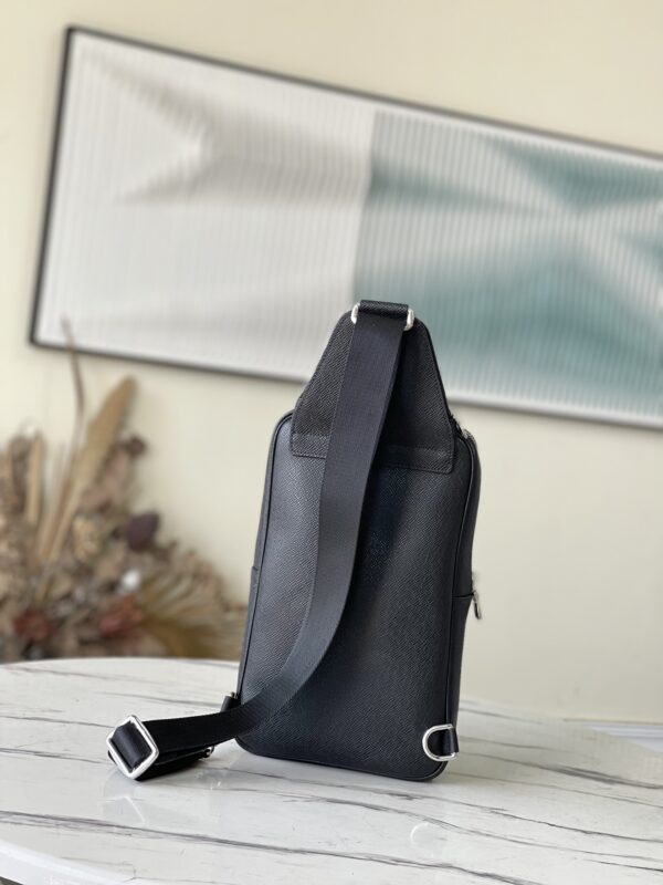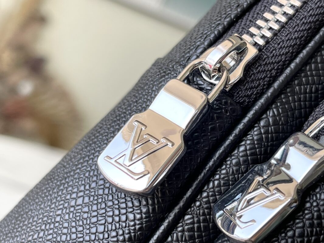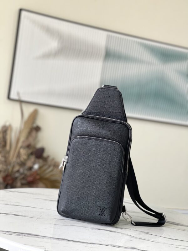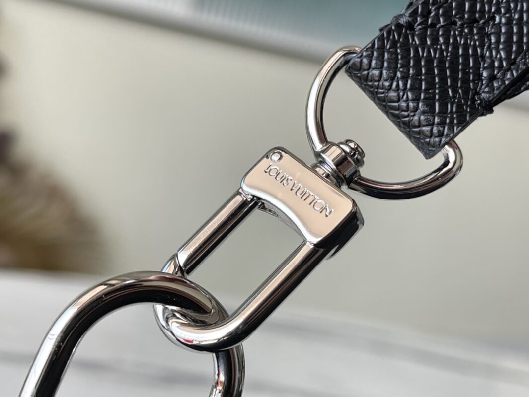 The new Saffiano Avenue shoulder bag uses Taiga leather to outline the iconic lines, embellished with LV letters, and has a front zipper pocket and inner patch pockets that are functional, providing a trendy alternative to traditional backpacks. Adjustable shoulder strap and hook buckle for left and right carrying. Dimensions: 20 x 31 x 10 cm