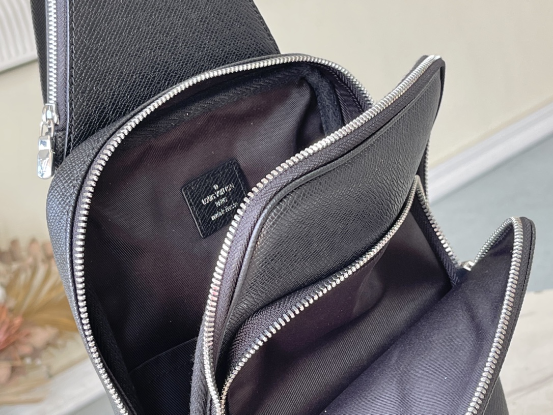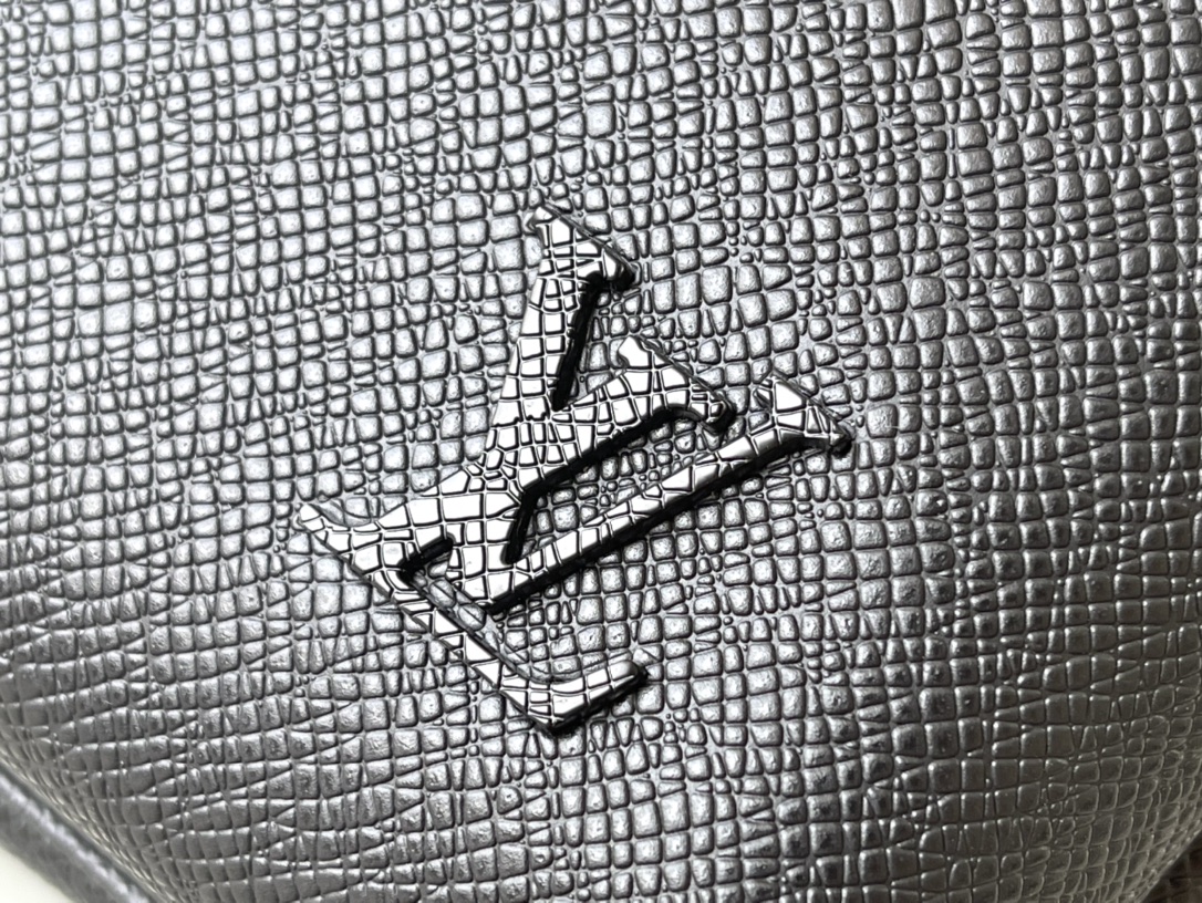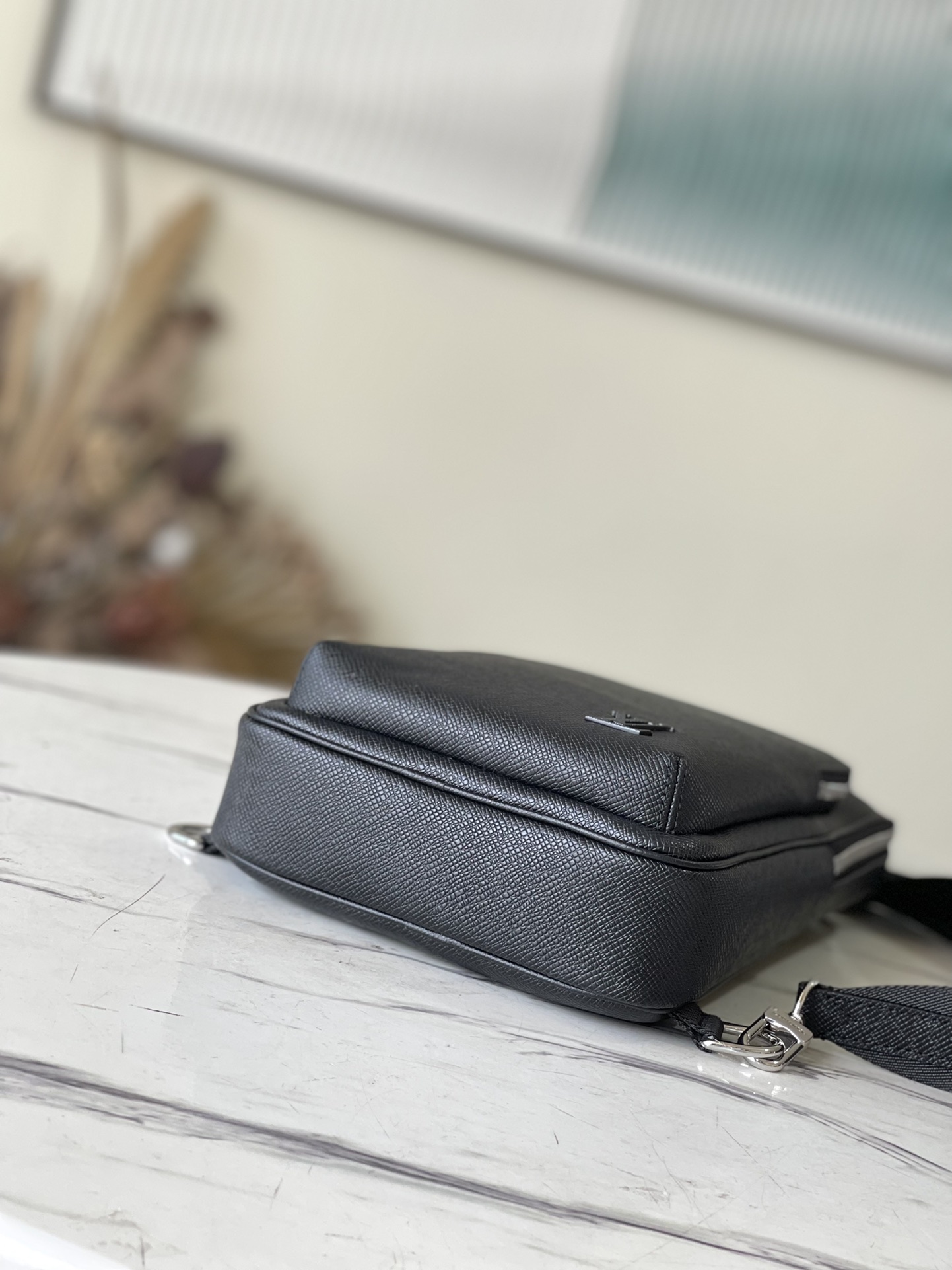 The new Saffiano Avenue shoulder bag uses Taiga leather to outline the iconic lines, embellished with LV letters, and has a front zipper pocket and inner patch pockets that are functional, providing a trendy alternative to traditional backpacks. Adjustable shoulder strap and hook buckle for left and right carrying. Dimensions: 20 x 31 x 10 cm
