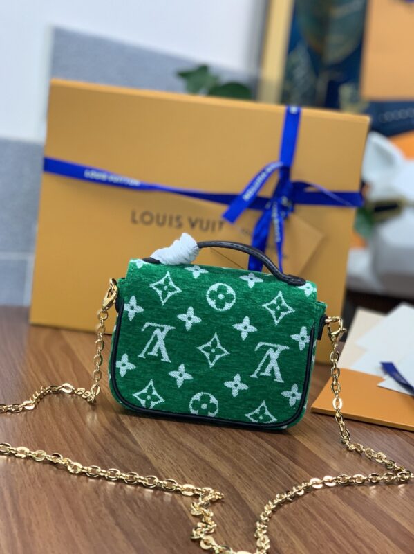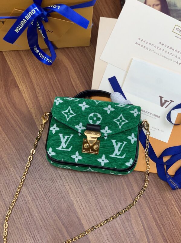 The Micro Métis chain bag from the LV Match collection captures the excitement of the world’s top tennis tournaments. Fabric flocked flower chain mini postman green and white oo[Handshake][Handshake] Monogram jacquard fleece made of recycled yarn creates a pocket shape, and the S-lock lock from the Louis Vuitton hard case continues the logo of the Métis series Sexy elements, the detachable chain realizes the trendy carrying method. Dimensions: 14 x 11 x 3.5 cm
