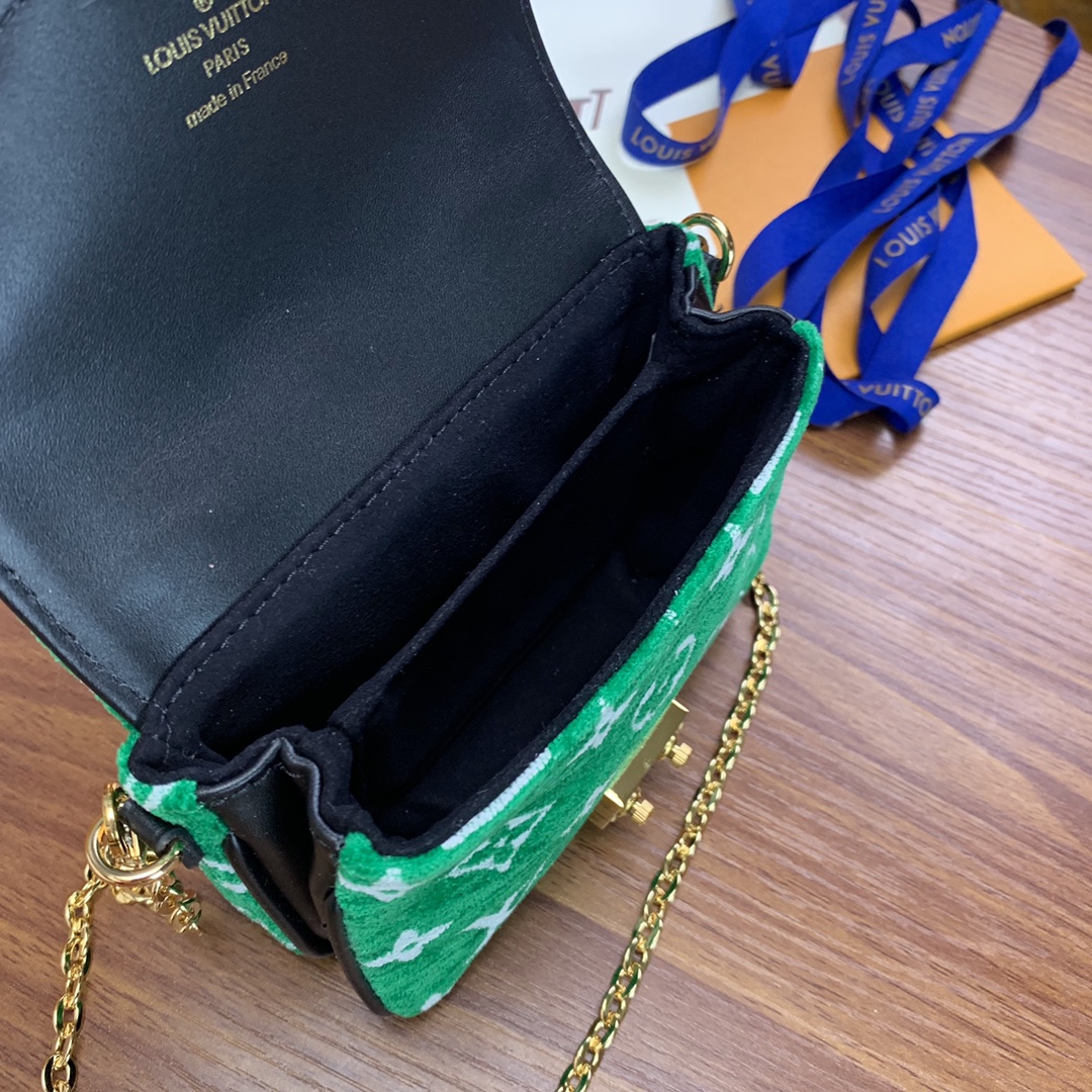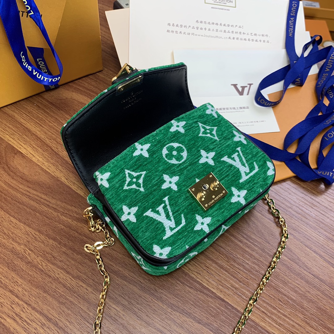 The Micro Métis chain bag from the LV Match collection captures the excitement of the world’s top tennis tournaments. Fabric flocked flower chain mini postman green and white oo[Handshake][Handshake] Monogram jacquard fleece made of recycled yarn creates a pocket shape, and the S-lock lock from the Louis Vuitton hard case continues the logo of the Métis series Sexy elements, the detachable chain realizes the trendy carrying method. Dimensions: 14 x 11 x 3.5 cm