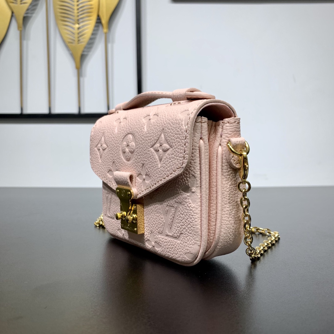 The Micro Métis chain bag in supple Monogram Empreinte leather condenses the classic Pochette Métis design into a pocket size. The S-lock lock is derived from the traditional Louis Vuitton hard case, continuing the iconic elements of the Métis series. 14 x 11 x 3.5 cm (length x height x width)