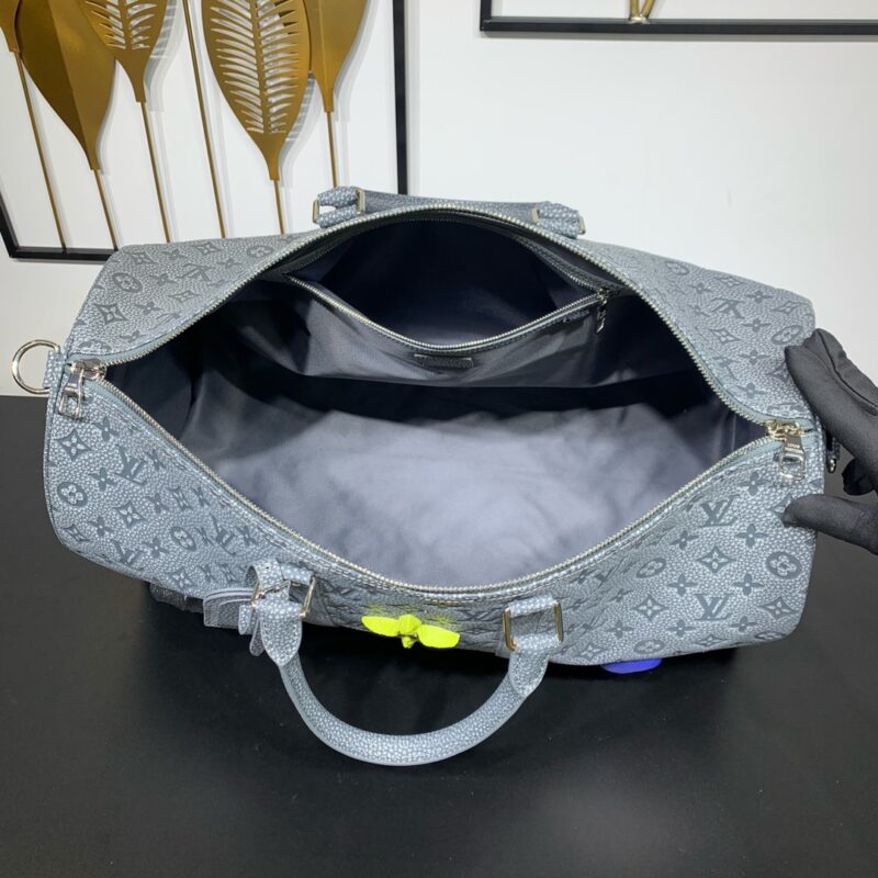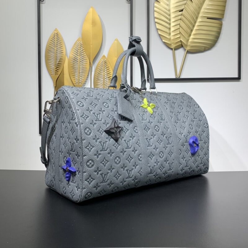 This Keepall travel bag presents the rock climbing story written by designer Virgil Abloh for the 2022 autumn and winter series, recalling the unrestrained and comfortable childhood. Taurillon Monogram calf leather is dipped in a rough color, and colorful climbing-inspired decorations resemble the classic Monogram flowers, injecting fresh ideas into traditional designs. 50 x 29 x 23 cm (length x height x width)