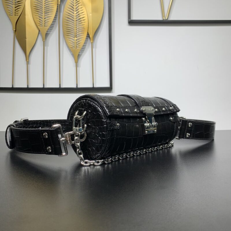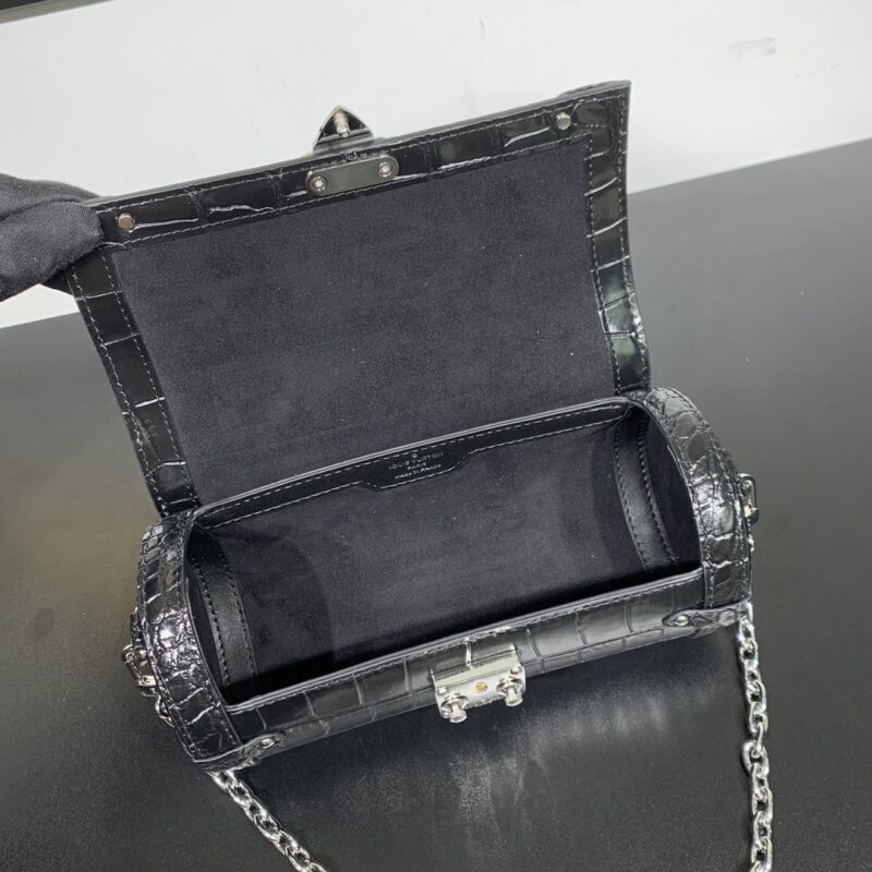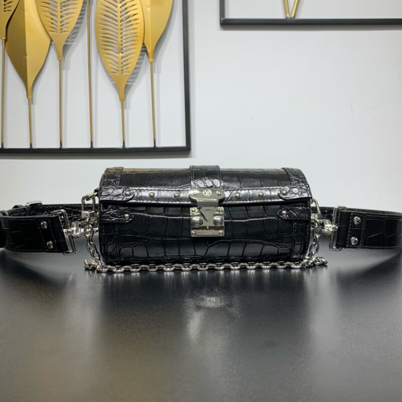 Nicolas Ghesquière draws on the Louis Vuitton archives to present the new Papillon Trunk handbag, which is gentle and relaxed. Made of glossy crocodile leather with S-lock closure for a luxurious feel. 19 x 9 x 9 cm (length x height x width)