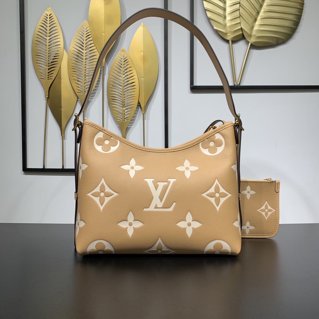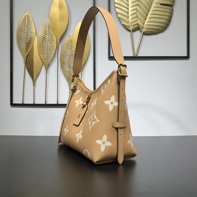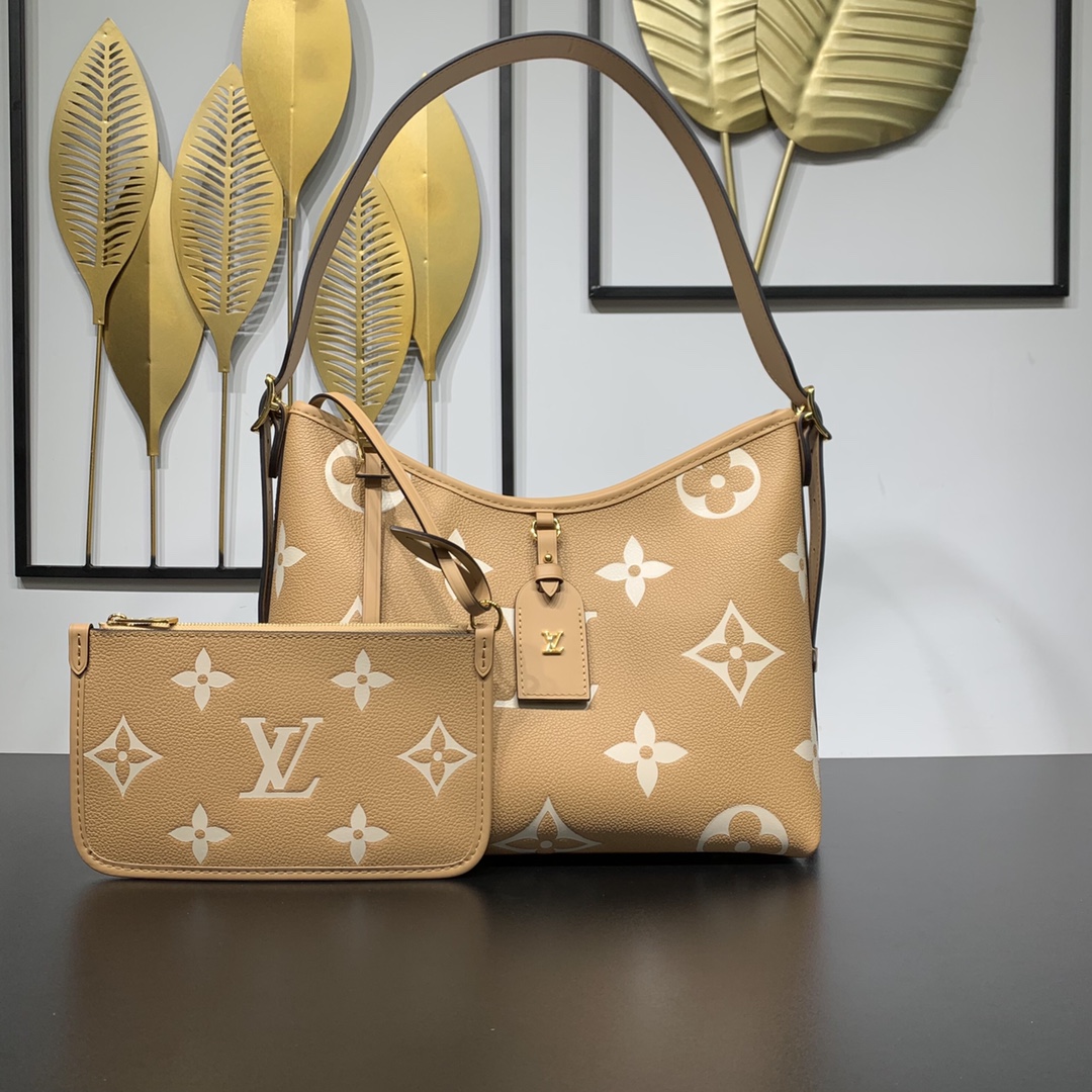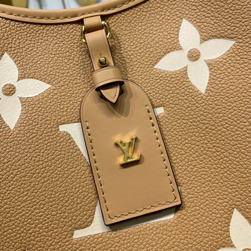The CarryAll small handbag is made of Monogram Empreinte embossed leather, with ample configuration and a neat interior, and a large inner pocket adds a functional element. The matching Monogram embossed zip clutch is secured by a leather strap. A personal companion for urban life. 29 x 24 x 12 cm (length x height x width)