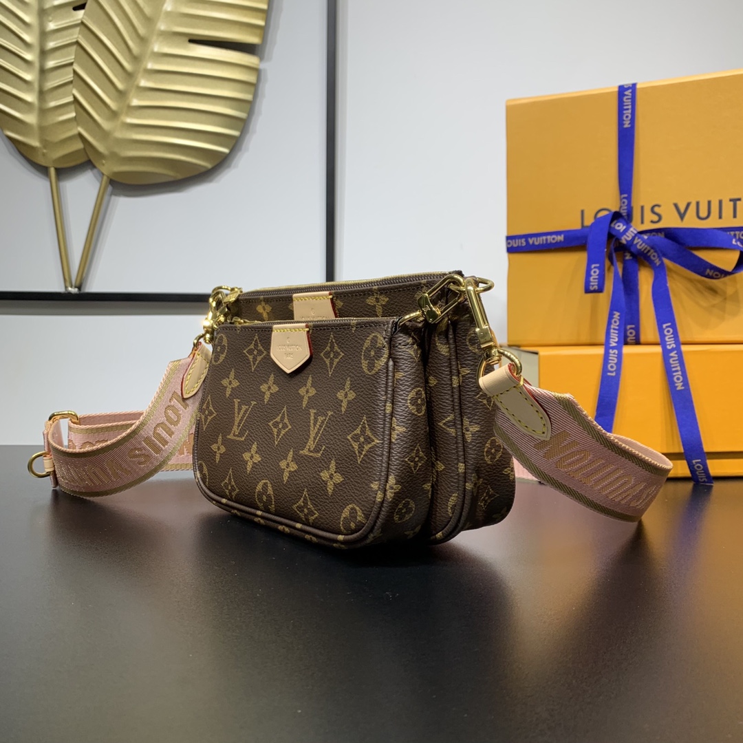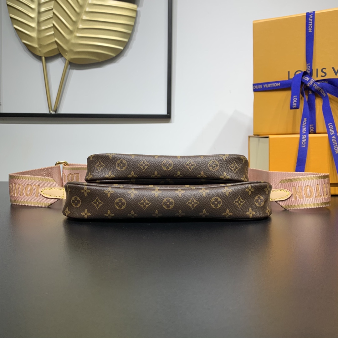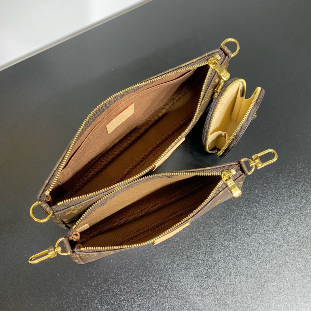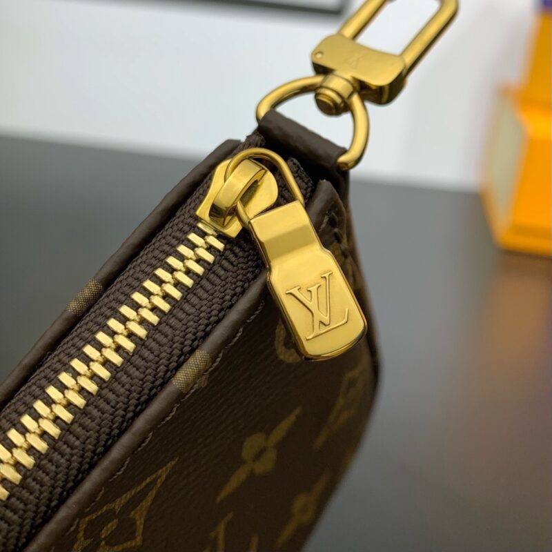 The Multi Pochette Accessories bag is a dynamic three-in-one design in Monogram canvas, with multiple pockets and compartments. The adjustable gold chain and Louis Vuitton inscription jacquard shoulder strap provide a variety of carrying methods such as crossbody. Dimensions: 24 x 16 x 6 cm (length x height x width)