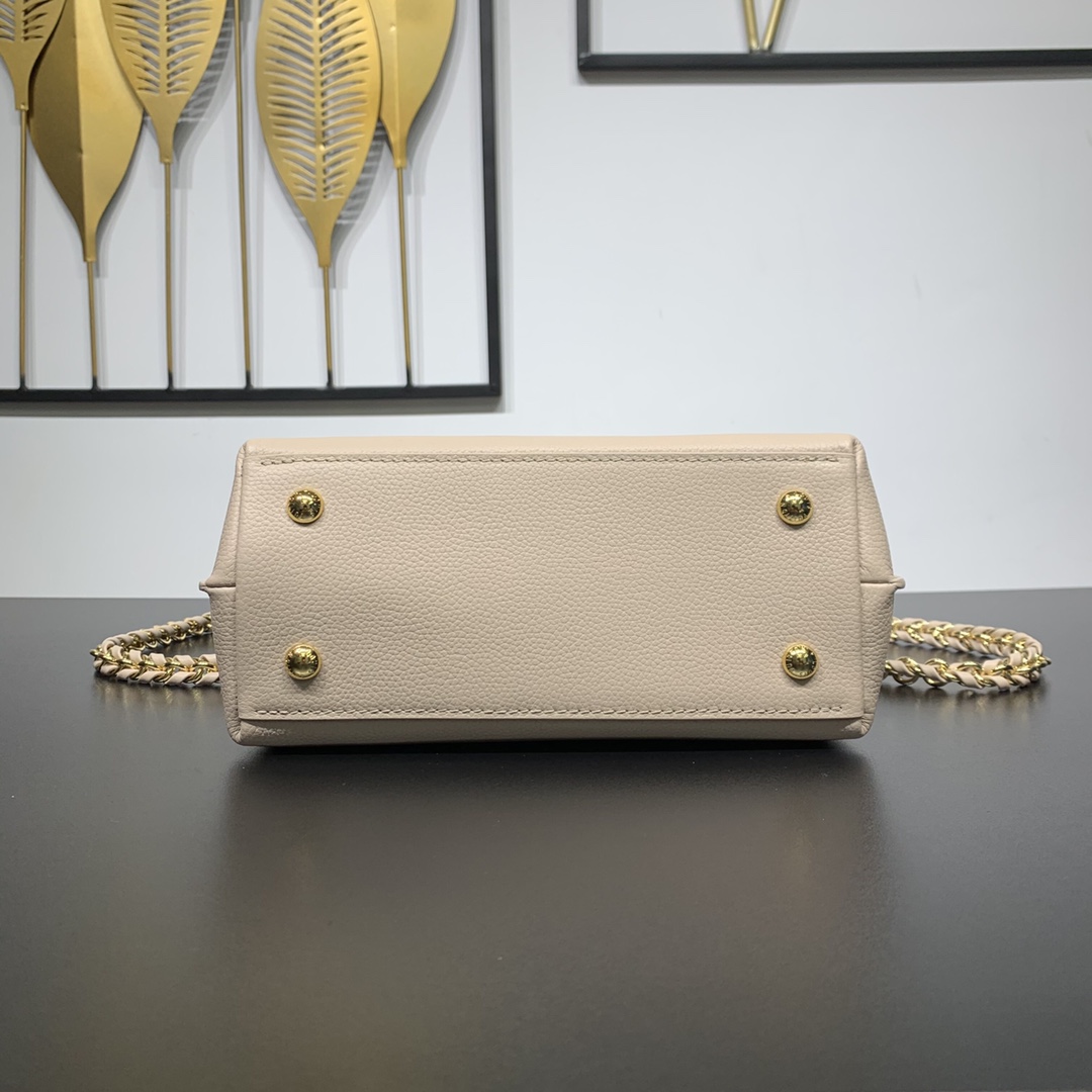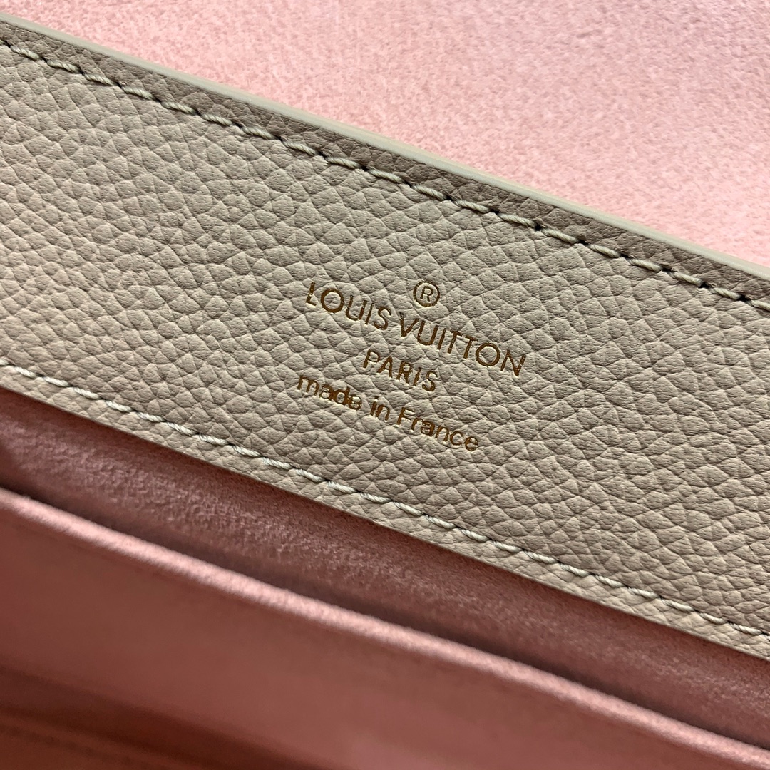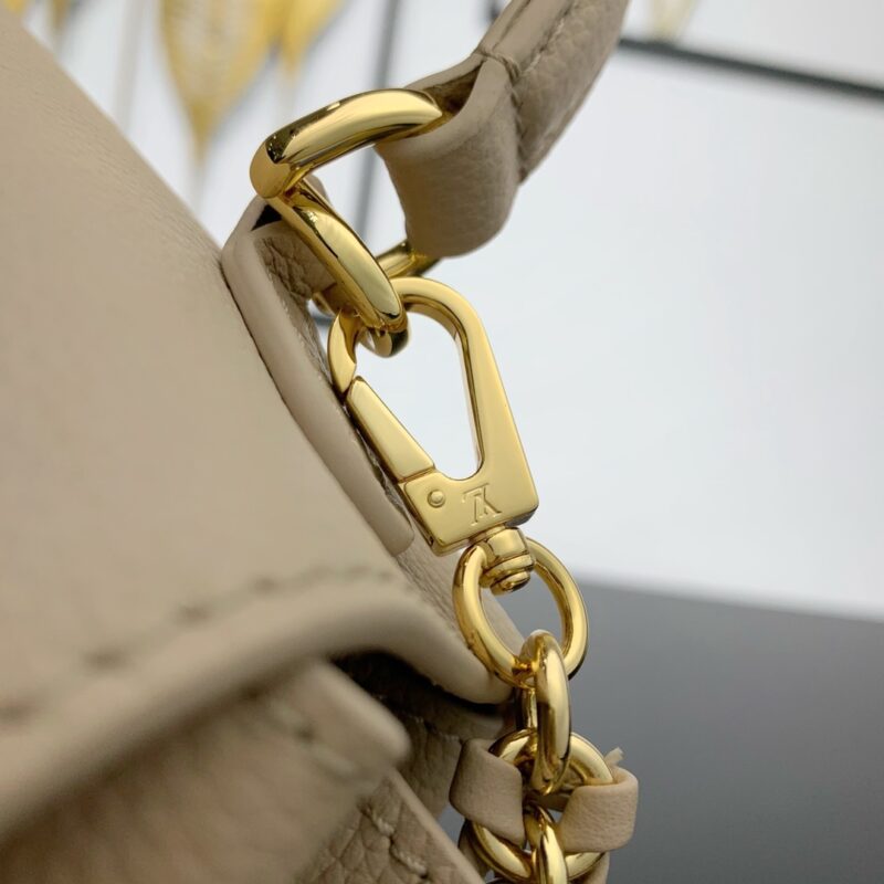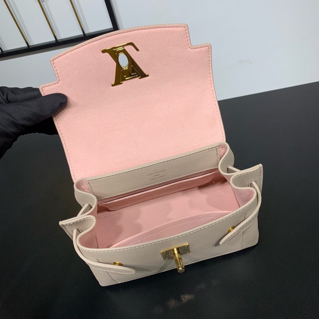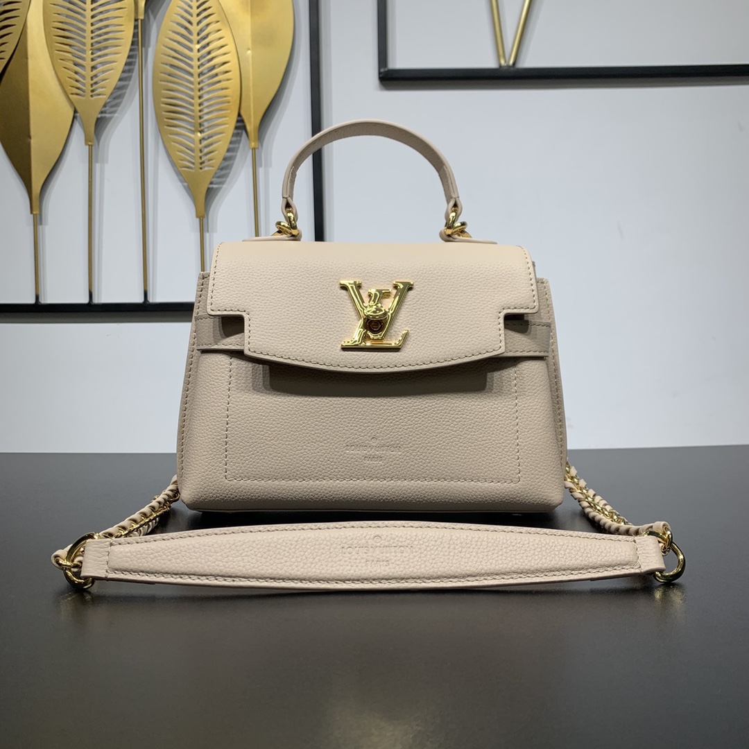 This season, the petite Lockme Ever mini bag is dyed in a trendy new color in grained calfskin. The exquisite lines and the iconic LV padlock convey trendy style, the elegant braided chain strap enables cross-body or shoulder-carry options, and the top handle makes the hand more gentle. It is a good choice to carry around day and night. 23 x 17 x 10 cm (length x height x width)