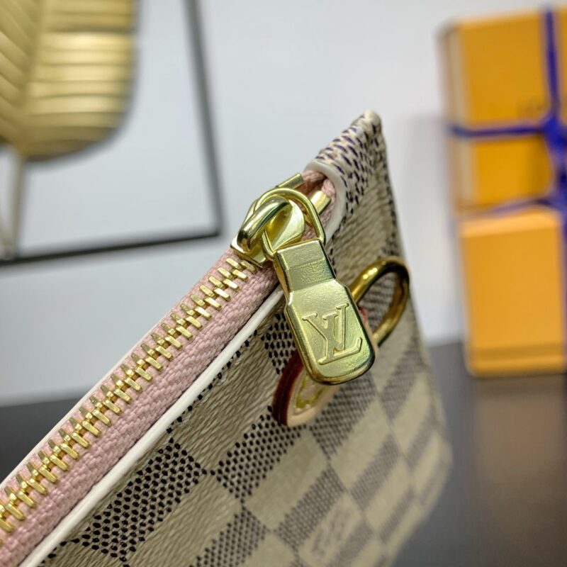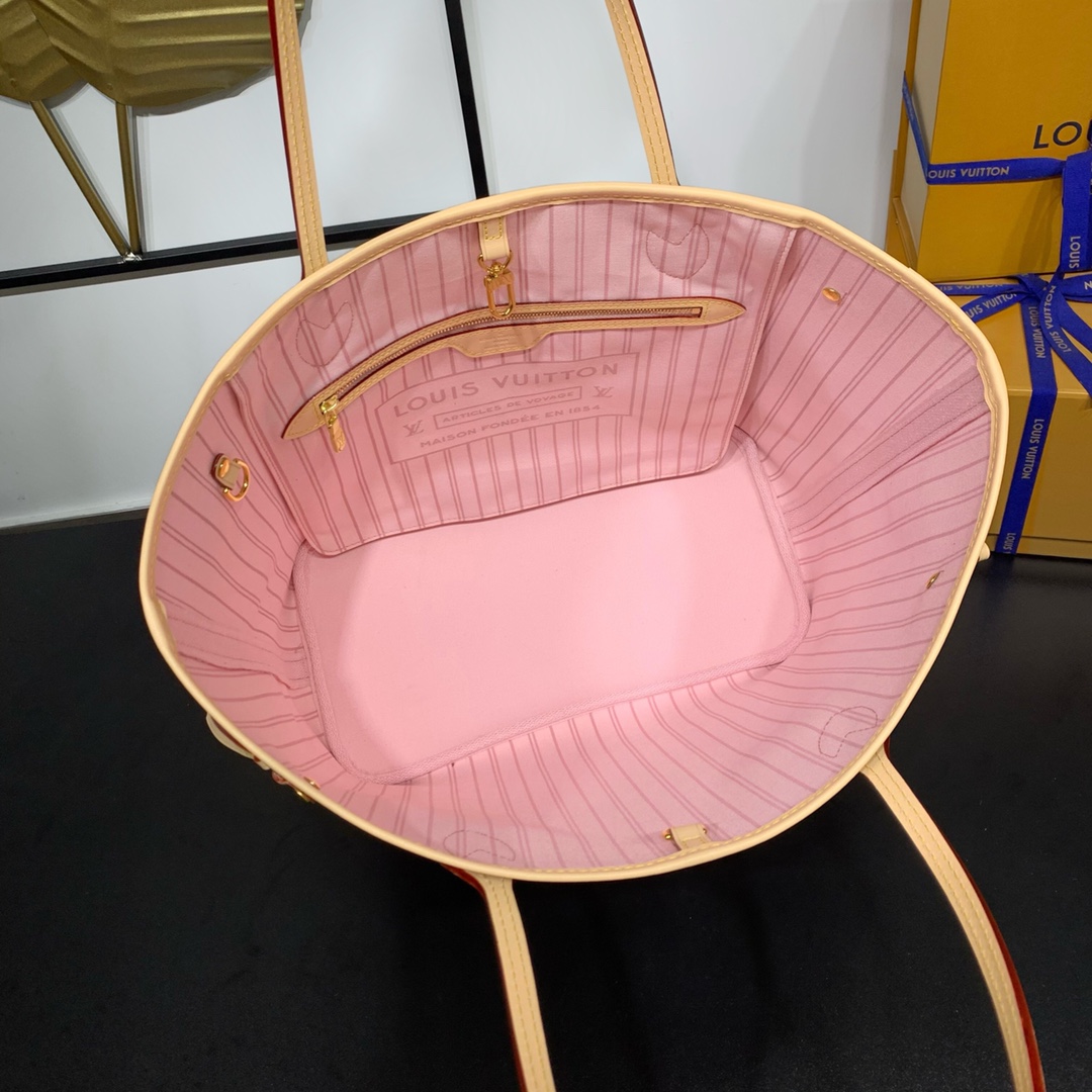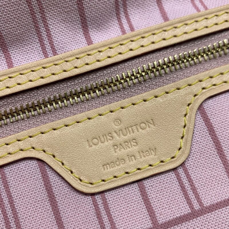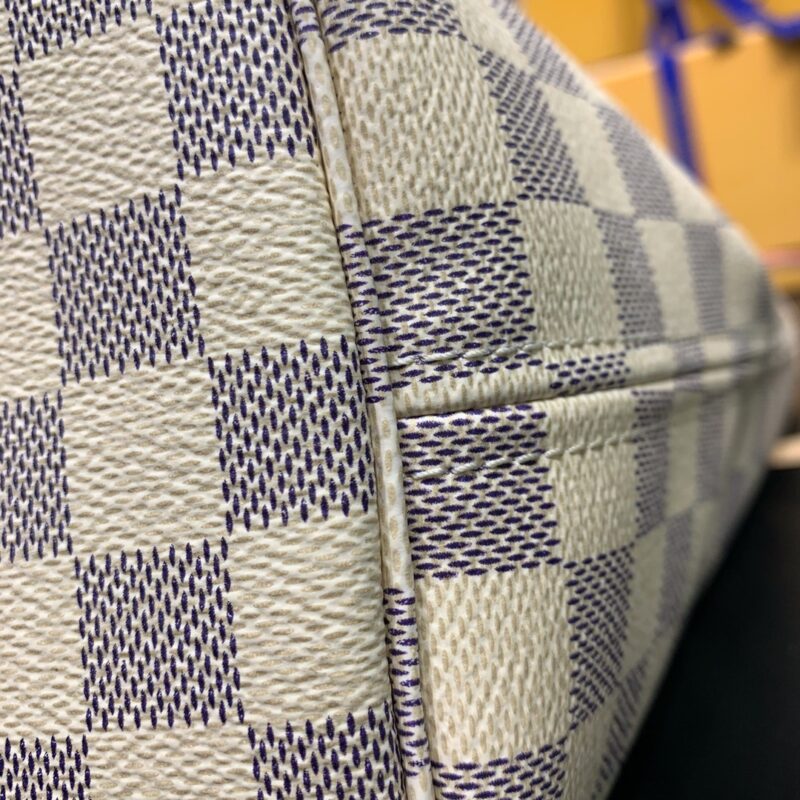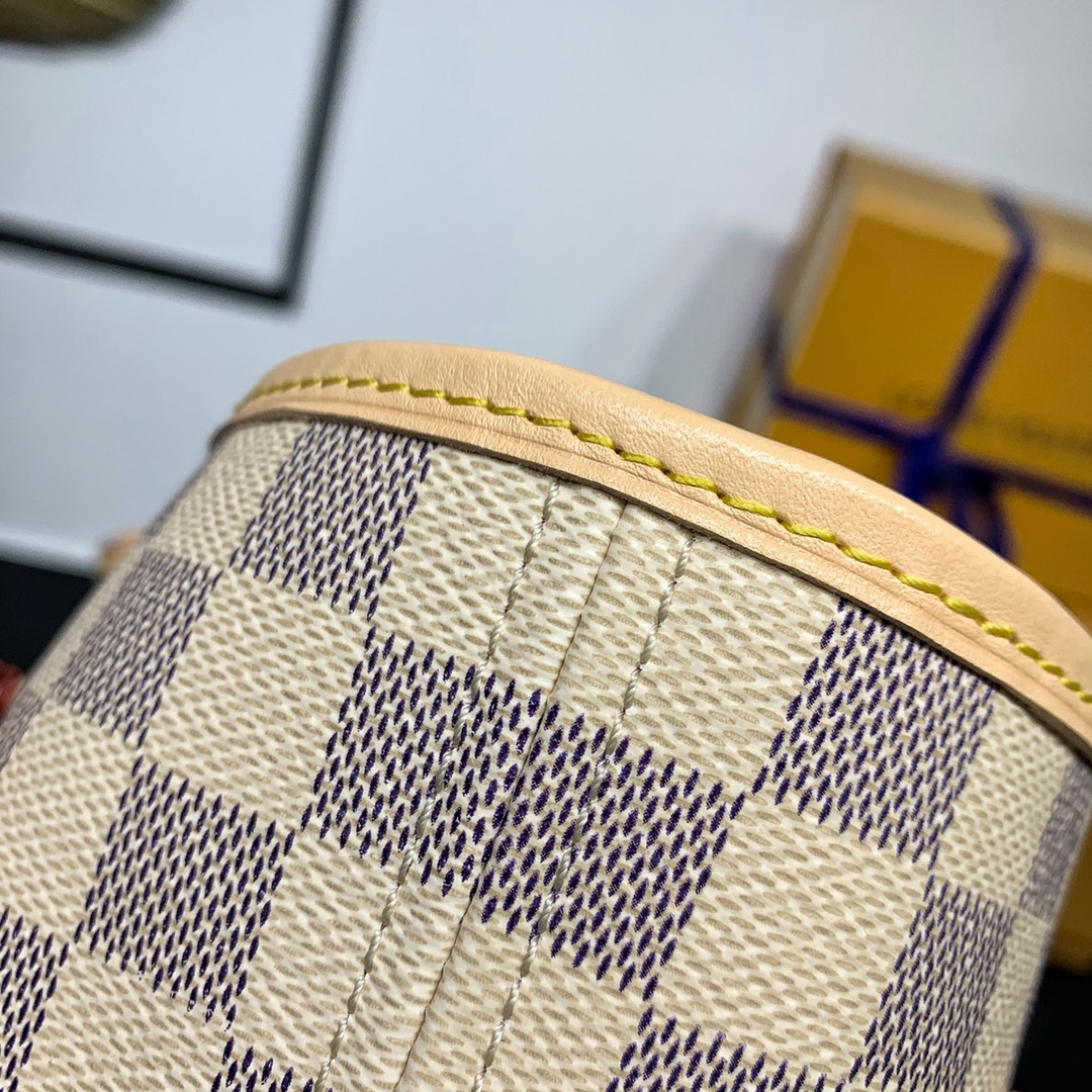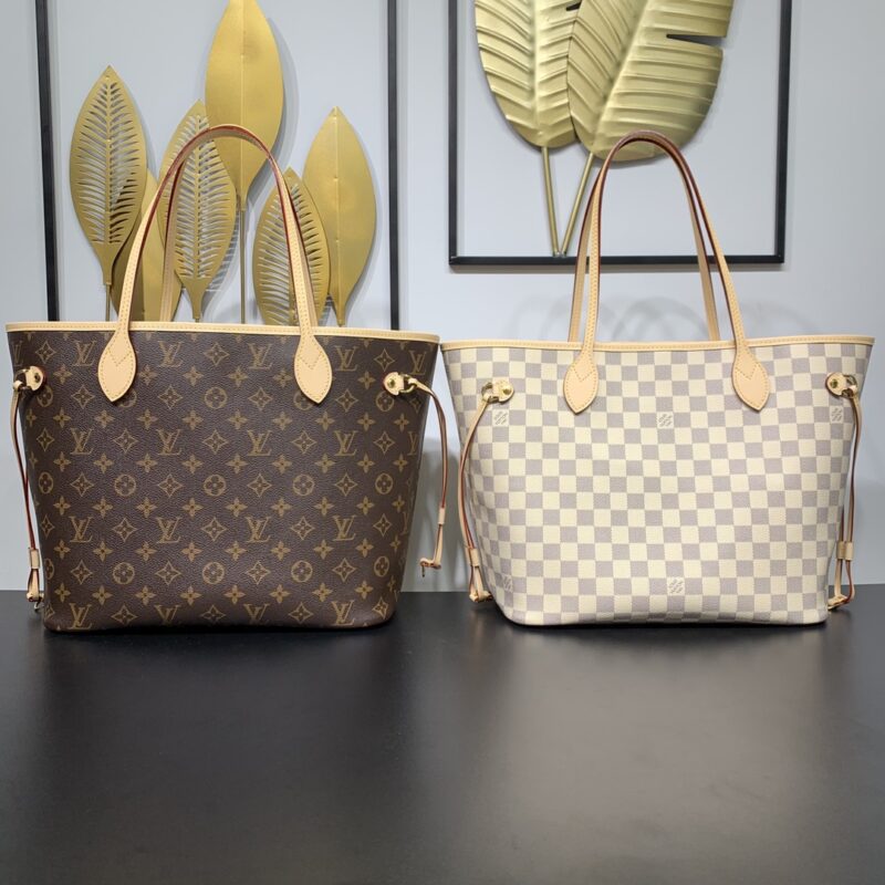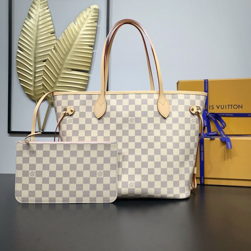 The legendary Neverfull bag: always available for your bag needs. Large capacity but not bulky, crisp yet soft to the touch, suitable for both home and travel. Cinch the side ties to instantly transform it into a stylish urban bag. Undo the straps and it transforms into a chic yet functional tote. The slim leather top handle can be worn on the shoulder or in the arm. The one shown here is made of Damier Azur canvas. Dimensions: 31 x 28.5 x 17 cm (length x height x width)