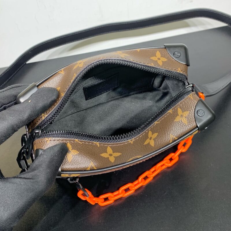Virgil Abloh presented the Mini SOFT TRUNK chain bag for the 2019 spring and summer show, telling the fusion of Monogram Macassar canvas and resin chains, tracing the brand’s box-making heritage with an elegant yet tough temperament. Can be carried on the shoulder or in the hand. 18.5 x 13 x 8 cm (length x height x width)