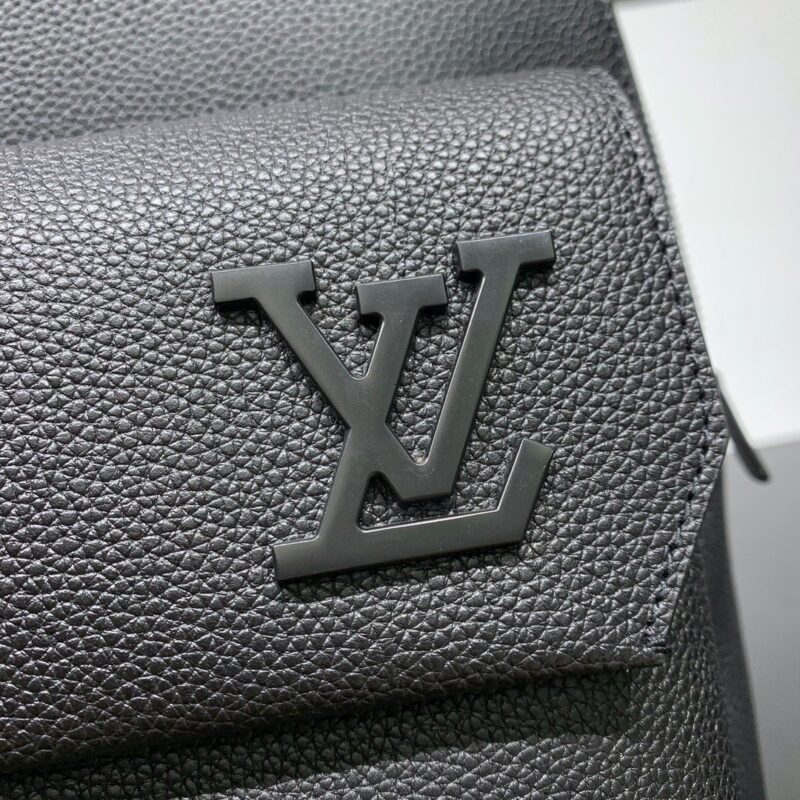 The new LV Aerogram backpack revolutionizes the trendy choice with elegant temperament. Fine calfskin as soft as old-fashioned airmail letterhead, embellished with matte metal LV signature. The main compartment and flap front pockets provide plenty of room for weekend getaways or city wanders. 30 x 43 x 14 cm (length x height x width)