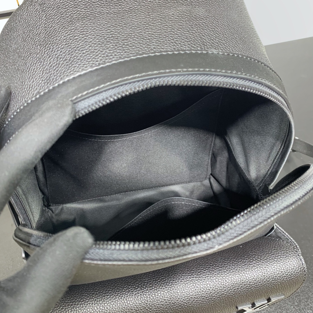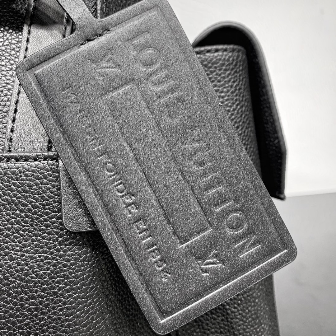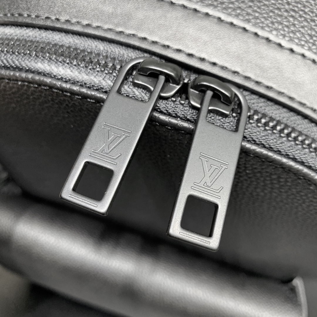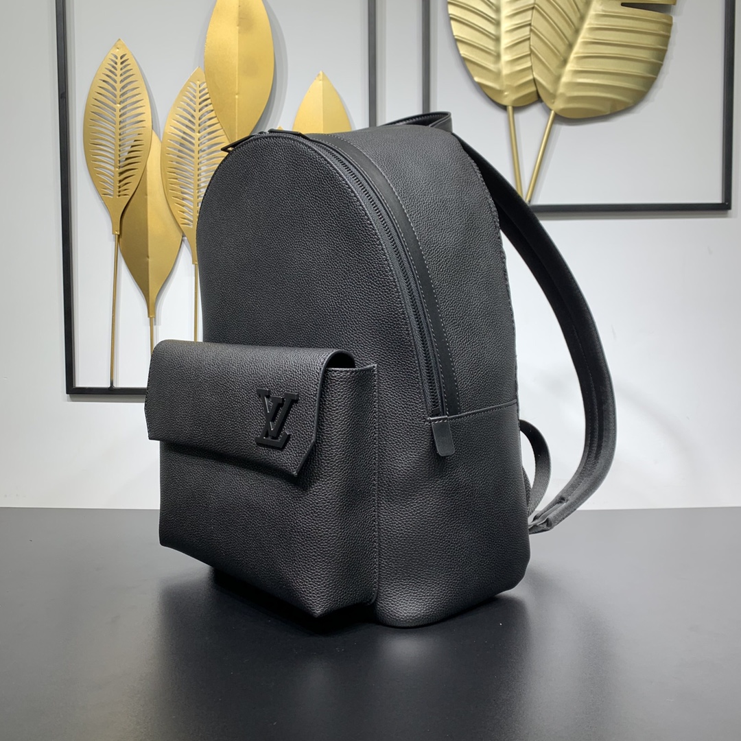 The new LV Aerogram backpack revolutionizes the trendy choice with elegant temperament. Fine calfskin as soft as old-fashioned airmail letterhead, embellished with matte metal LV signature. The main compartment and flap front pockets provide plenty of room for weekend getaways or city wanders. 30 x 43 x 14 cm (length x height x width)