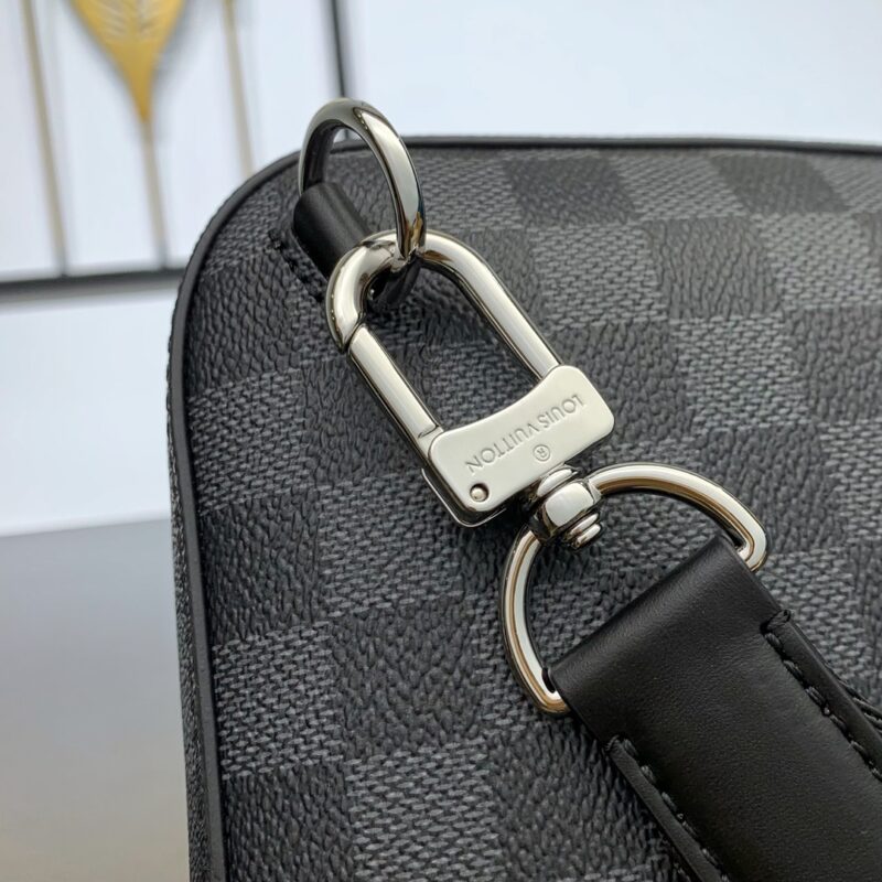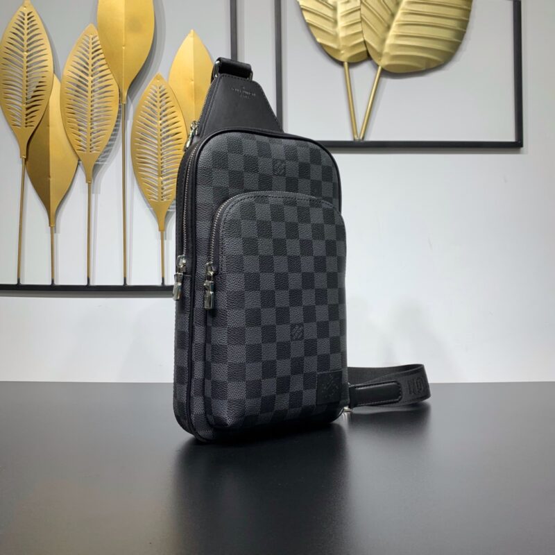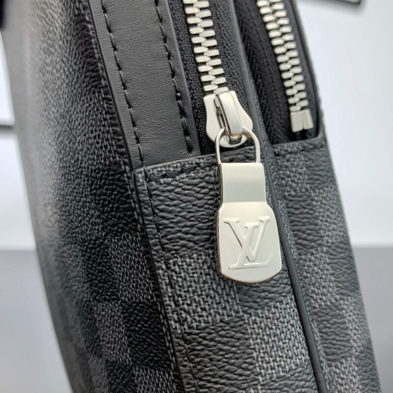 The Avenue Shoulder Bag in Damier Graphite canvas is the ideal companion for urban living: compact and stylish, with a casual, unruly attitude. The “smart” shoulder strap is designed to fit on the left or right shoulder. The shape design improves the comfort of carrying; the double zipper closure design ensures that valuables are safely placed. Convey fashion charm. 20 x 31 x 7 cm (length x height x width)