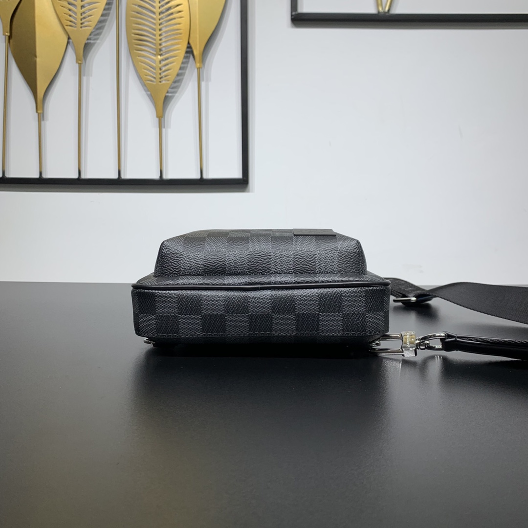 The Avenue Shoulder Bag in Damier Graphite canvas is the ideal companion for urban living: compact and stylish, with a casual, unruly attitude. The “smart” shoulder strap is designed to fit on the left or right shoulder. The shape design improves the comfort of carrying; the double zipper closure design ensures that valuables are safely placed. Convey fashion charm. 20 x 31 x 7 cm (length x height x width)