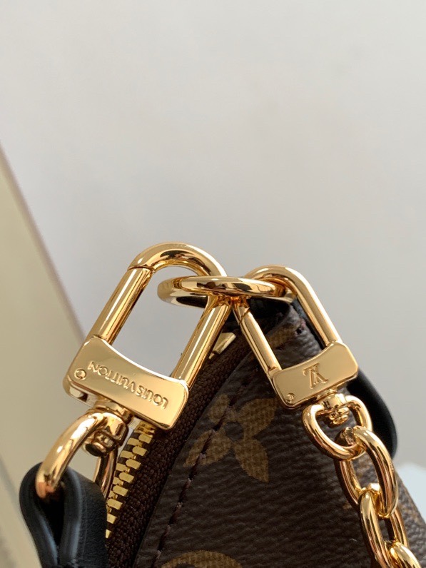 The Boulogne bag in classic Monogram canvas features a spacious interior patch pocket with double zippers and chains to accommodate an iPhone 12 Pro. The adjustable shoulder strap can be worn cross-body or over the shoulder, and can be removed to transform into a small chain bag or clutch. Dimensions: 25x 16 x 9.5 cm!