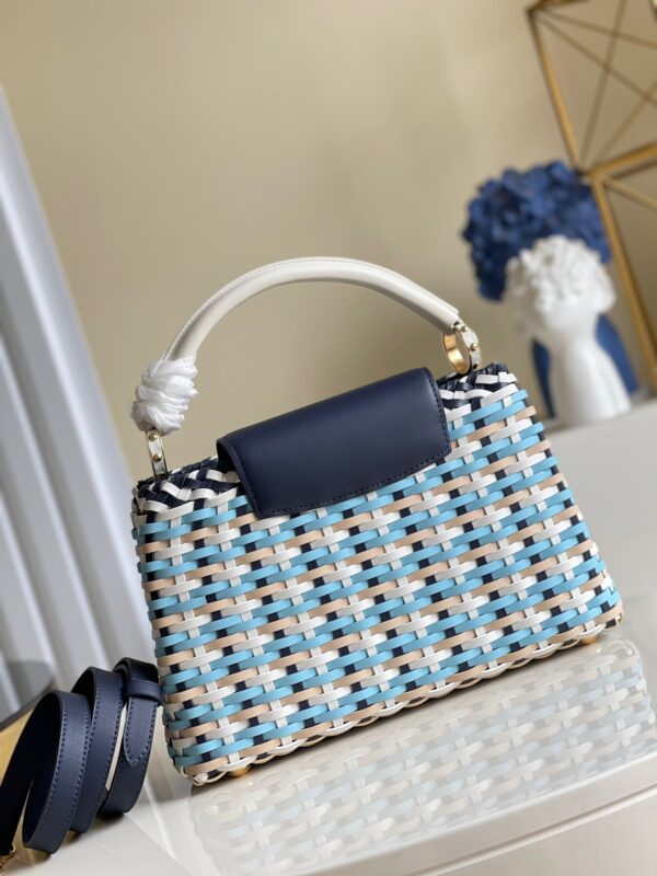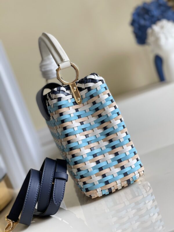 M94519 Medium Blue Medium limited edition Capucines Handbag is fresh and full of French style, custom-made bamboo and rattan weaving, all handmade. Launched in a limited edition for summer 2021, this sure-to-be cult favorite brings avant-garde style to this season’s looks. Size: 31.5x20x11