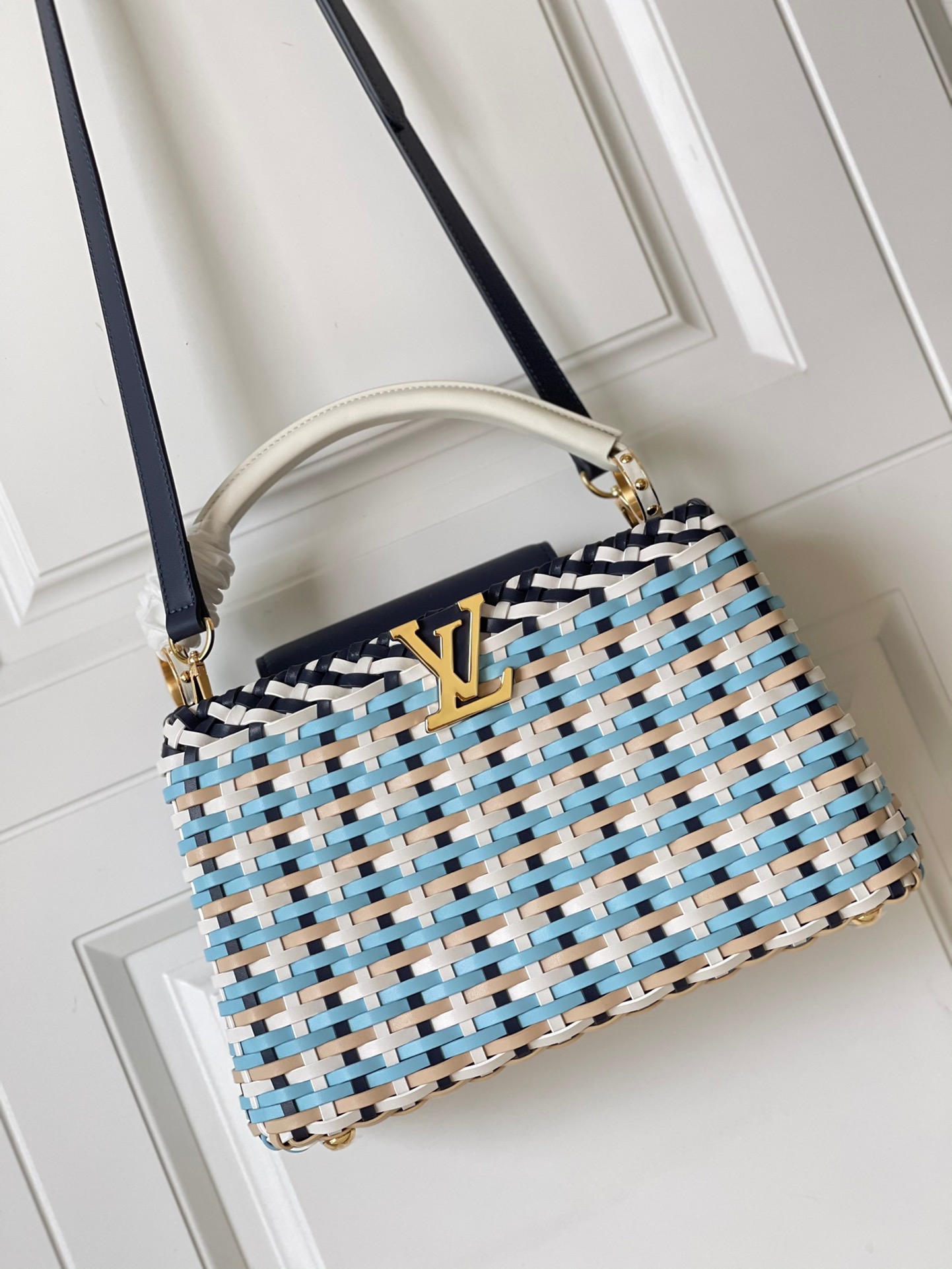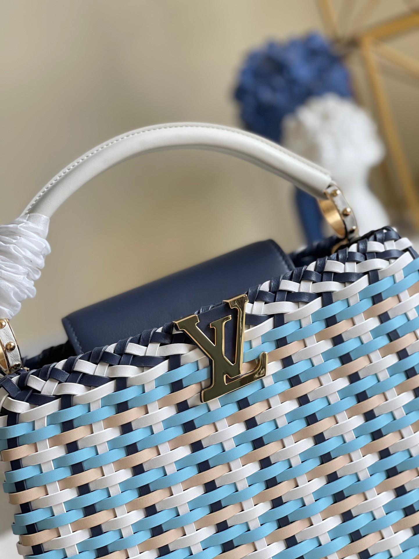 M94519 Medium Blue Medium limited edition Capucines Handbag is fresh and full of French style, custom-made bamboo and rattan weaving, all handmade. Launched in a limited edition for summer 2021, this sure-to-be cult favorite brings avant-garde style to this season’s looks. Size: 31.5x20x11