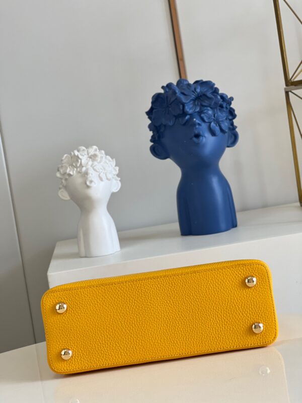 M59516 Light Gold Medium Size Capucines MM Handbag Imported French calfskin. Shiny metal accessories. Unique Capucines cover can be placed inside the bag to display the letter logo, and can be turned out to display the Monogram Flower pattern.Size: 31.5 x 20 x 11cm
