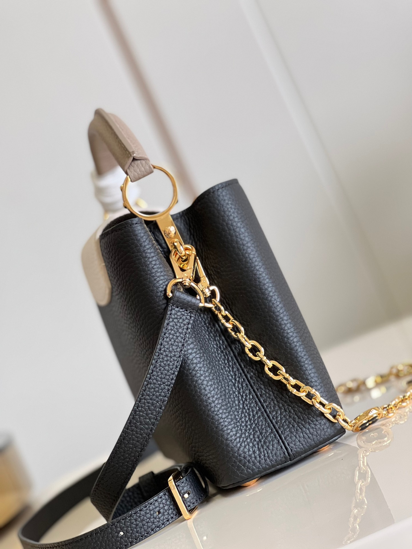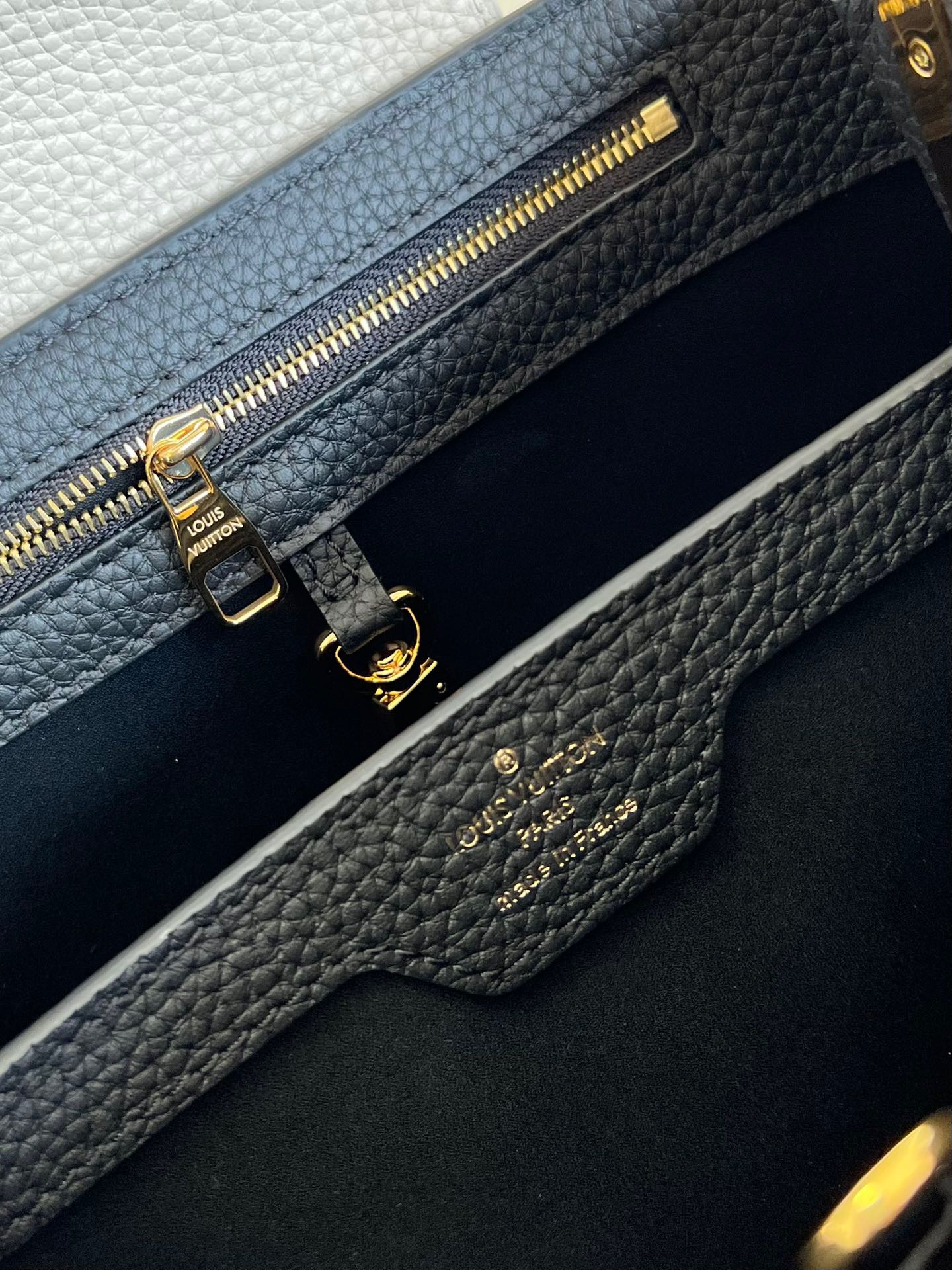 M20708 Black/Small SizeCapucines BB Handbag Metal Monogram flowers are colored by hand polishing and glazing, connected in series by delicate chains. Use the detachable and adjustable slim shoulder strap to explore more ways to carry it. Dimensions: 27cm x 18cm x 9 cm