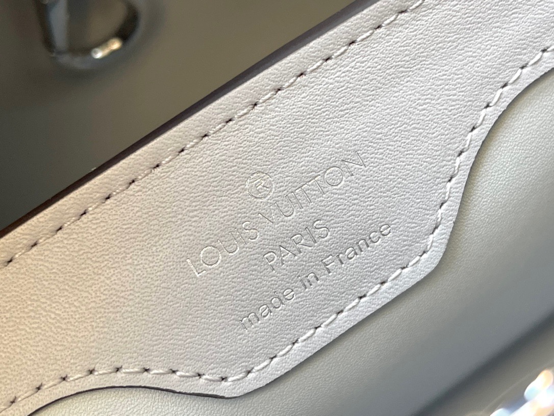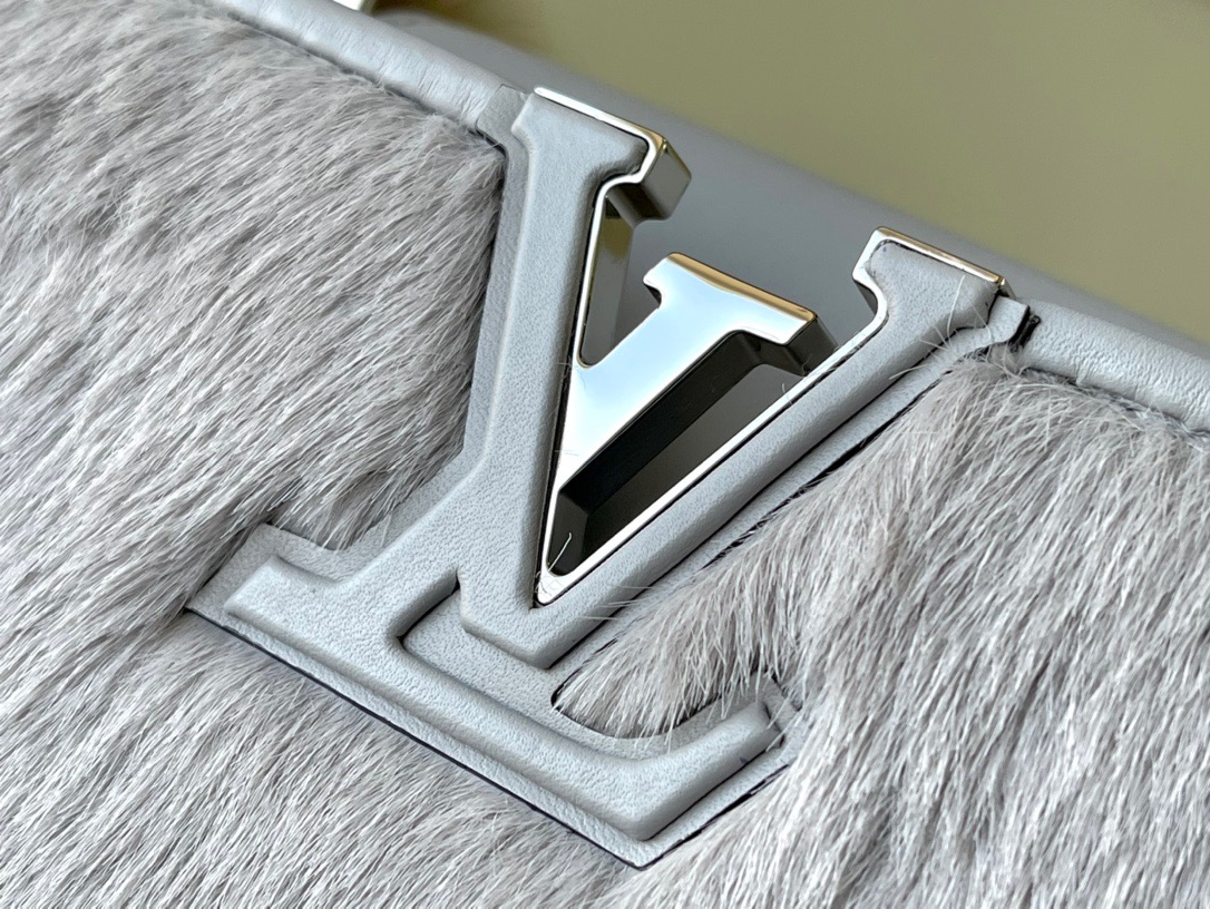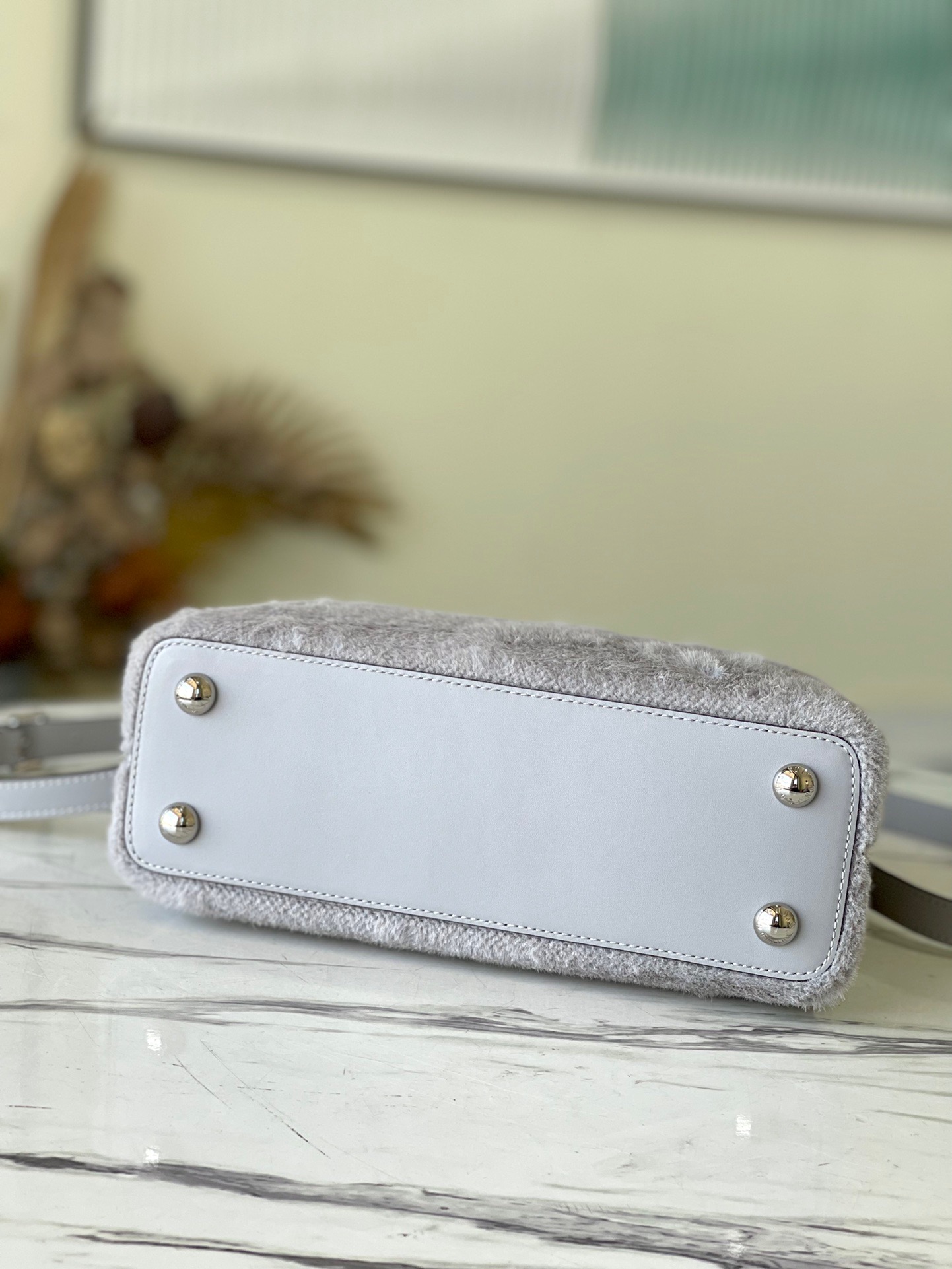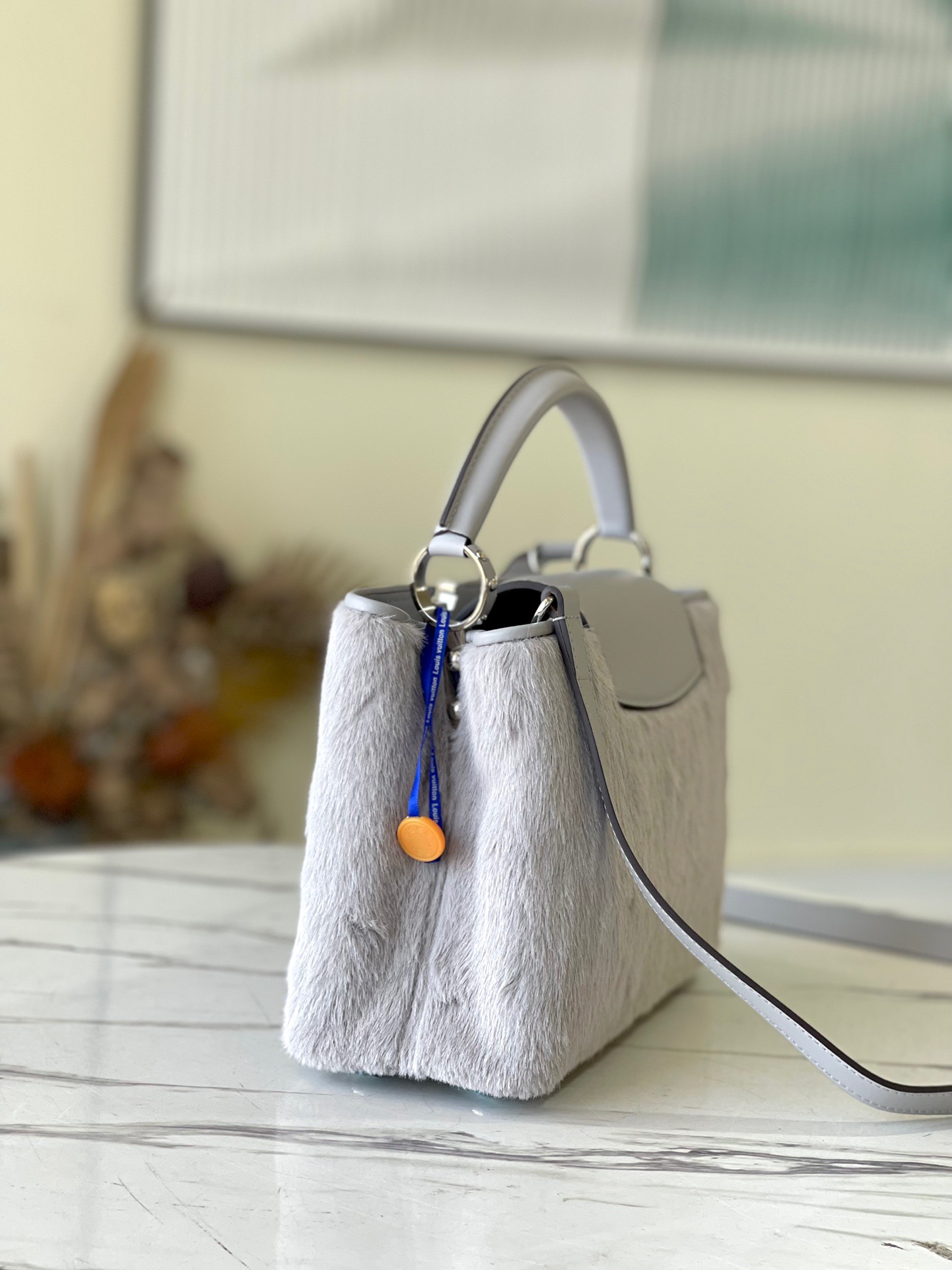 Top Original M48865 Mink Gray Silver Buckle This Capucines Small Handbag is made of Taurillon calf leather and mink fur and leather, singing winter whispers. The Monogram flower blooms on the wide leather shoulder body, which can be easily switched between shoulder and cross-body; the rolled leather handle realizes the choice of hand-carrying or elbow-carrying. Detailed features: 26.5 x 17.5 x 9 cm (length x height x width)