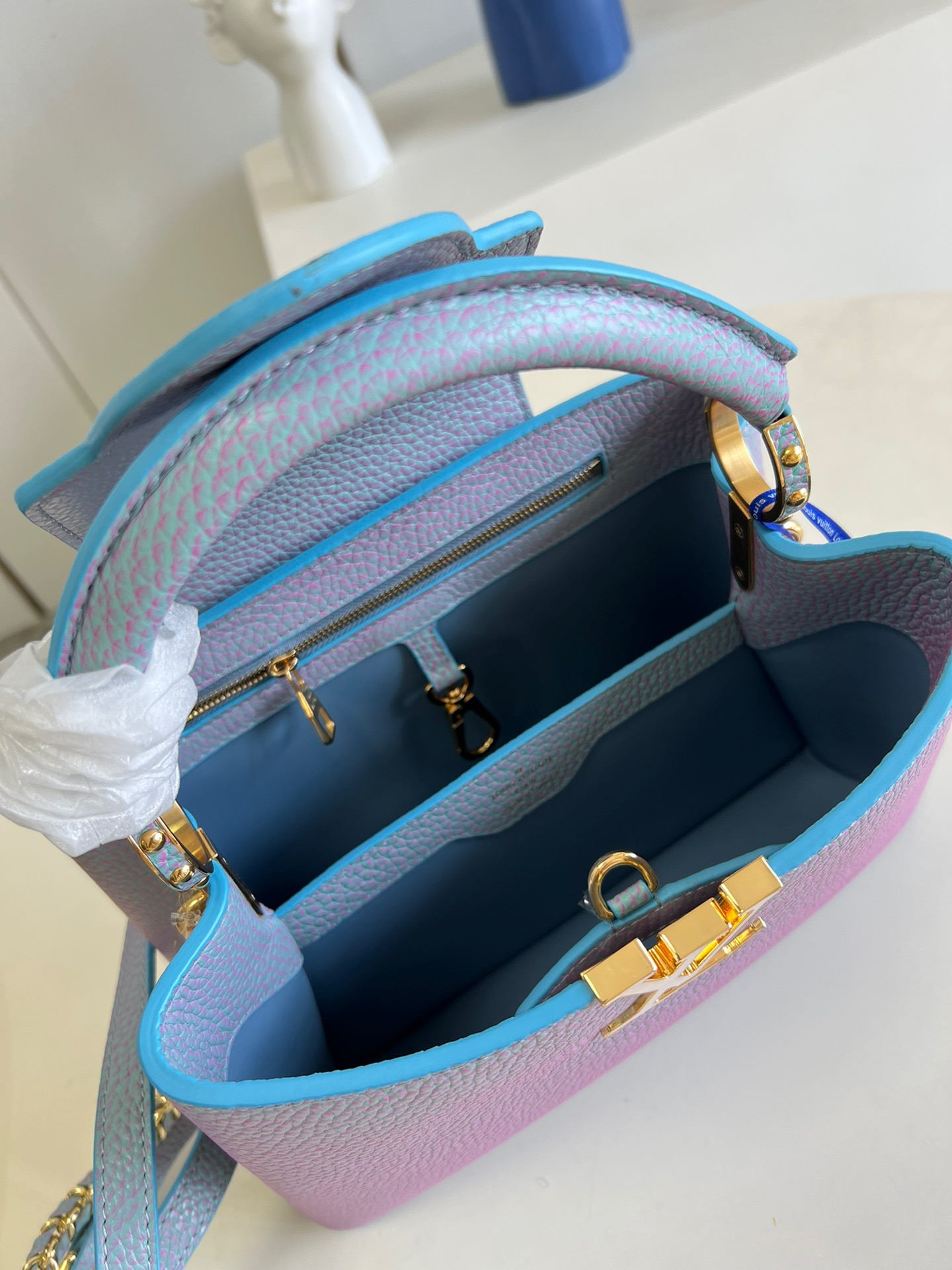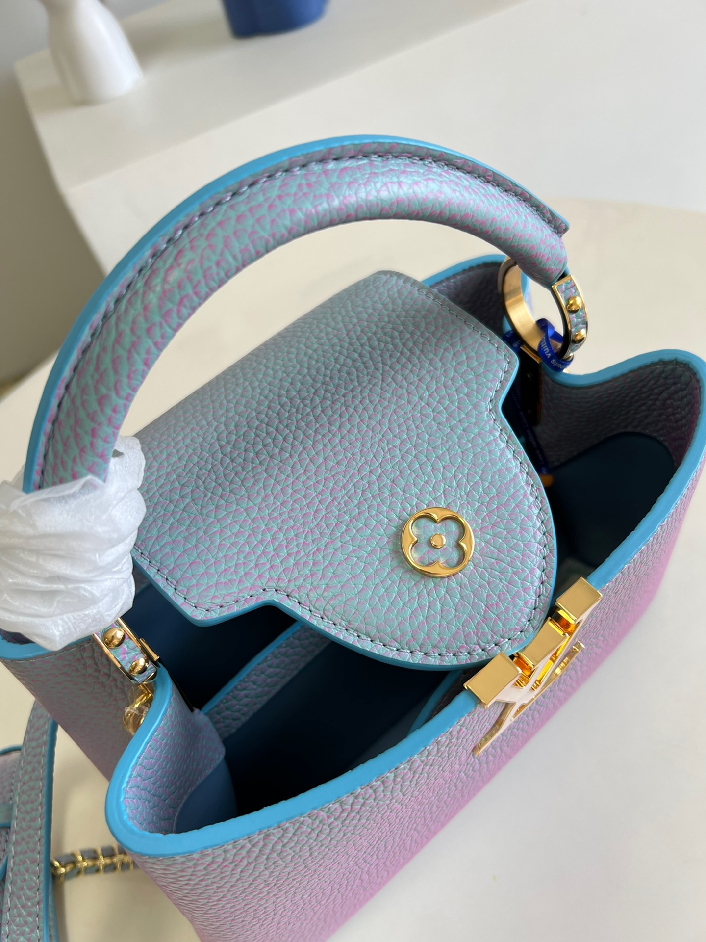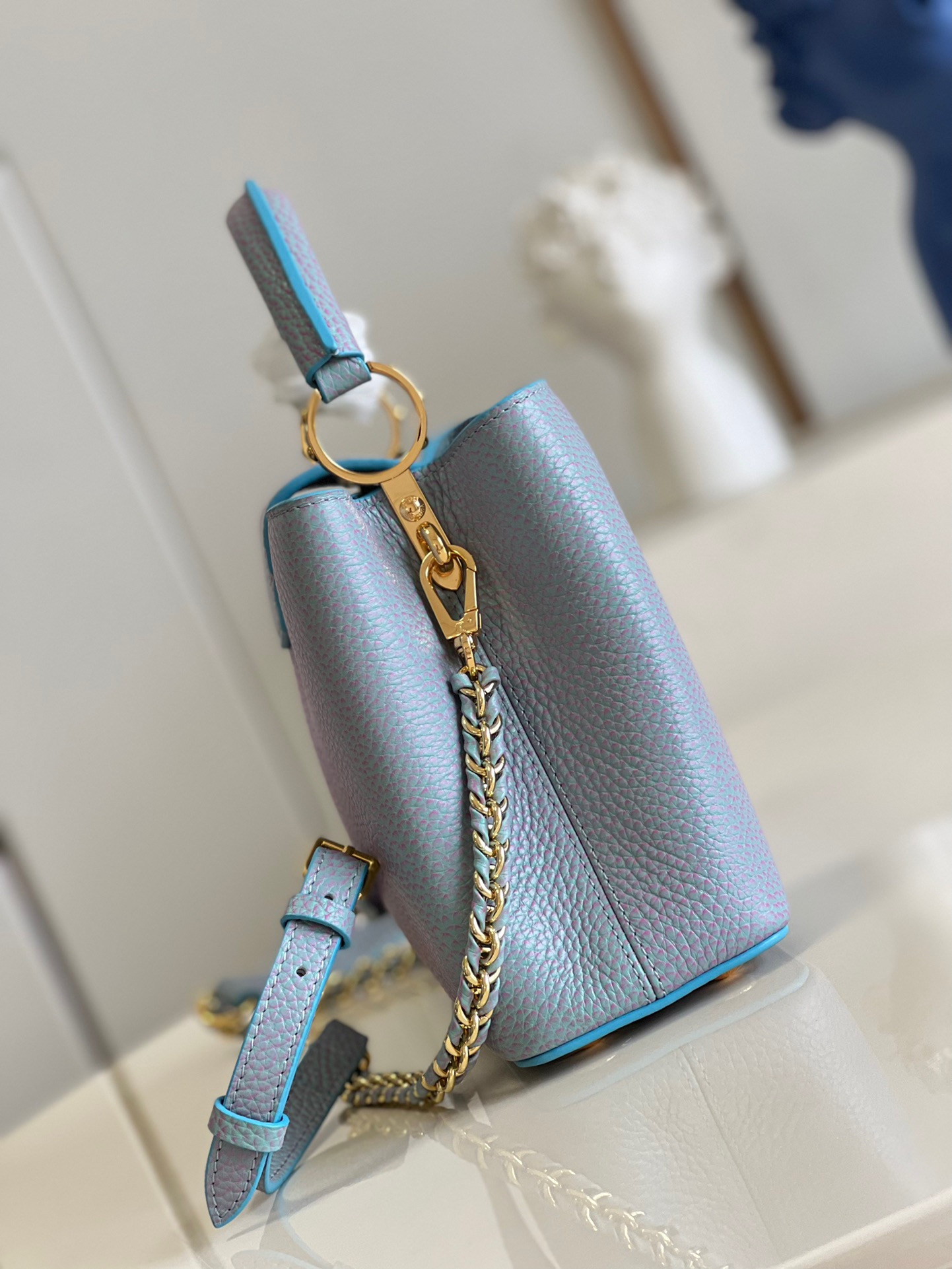 Louis Vuitton Capucines BB Small Handbag in Stardust Pearl Blue