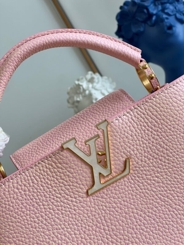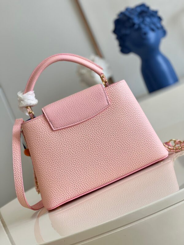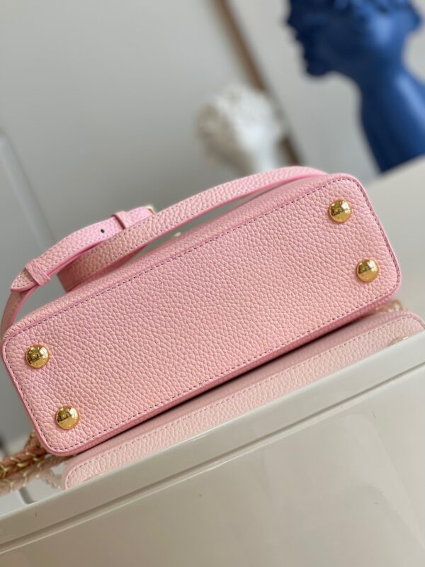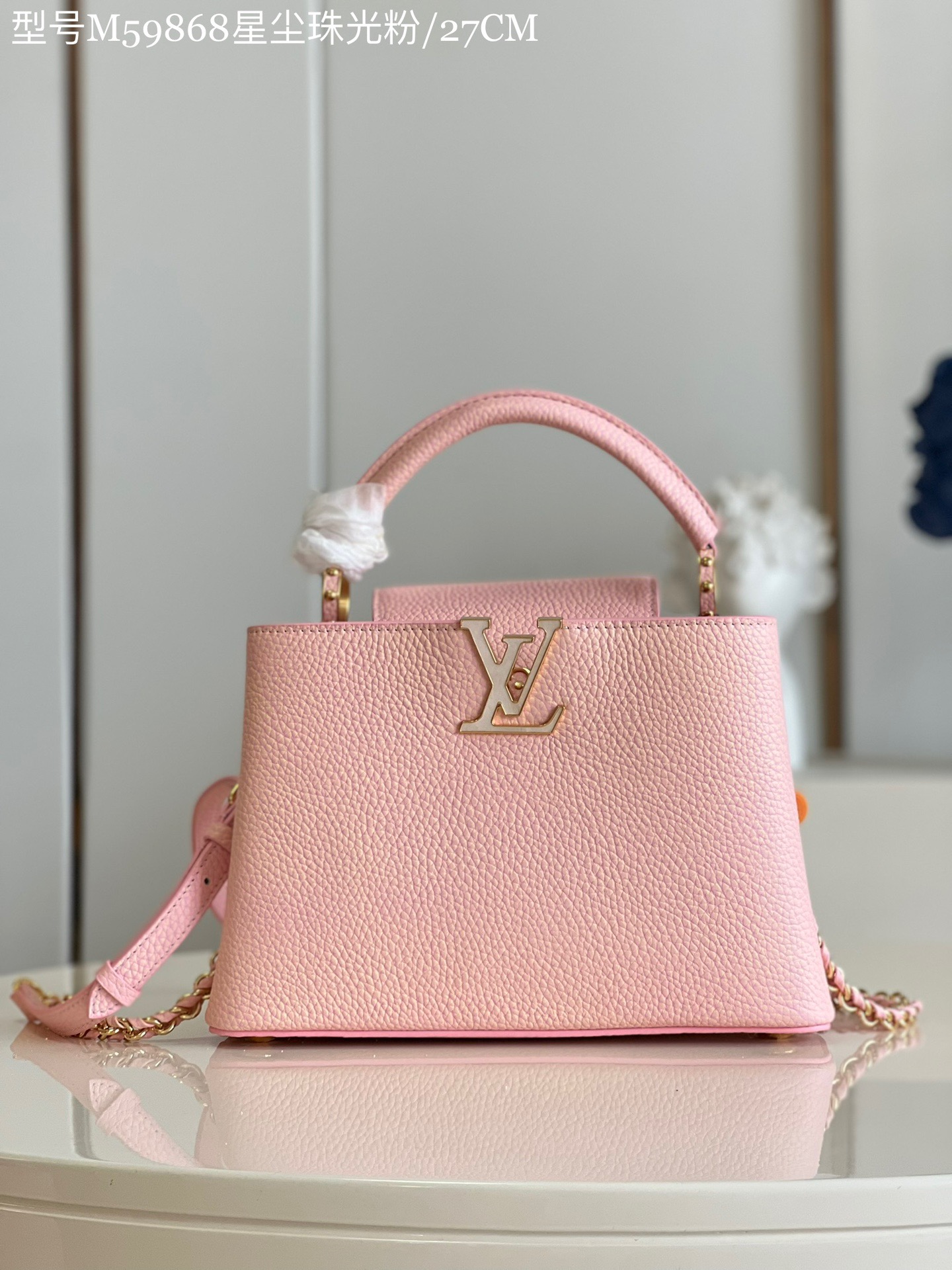 M59868 Stardust Pearl Powder SmallThis Capucines BB handbag shows the color change of Taurillon leather under different light. The letters shimmer like shells, and the single handle and detachable braided leather chain offer a variety of carrying options. Dimensions: 27 x 18 x 9cm