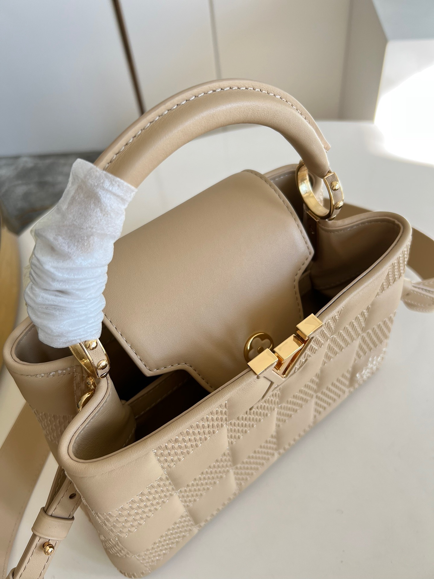Louis Vuitton Capucines BB Small Handbag with White Grid