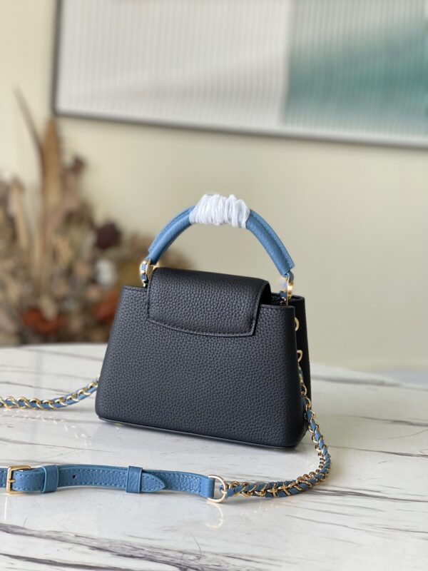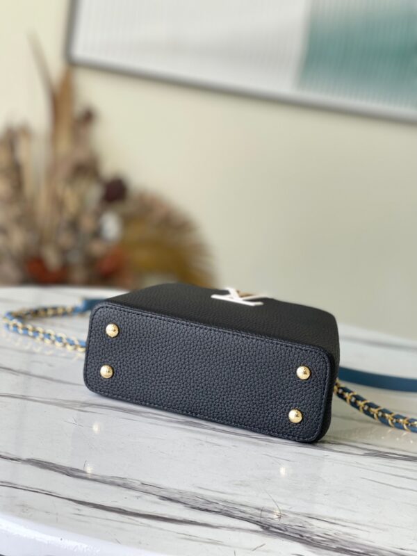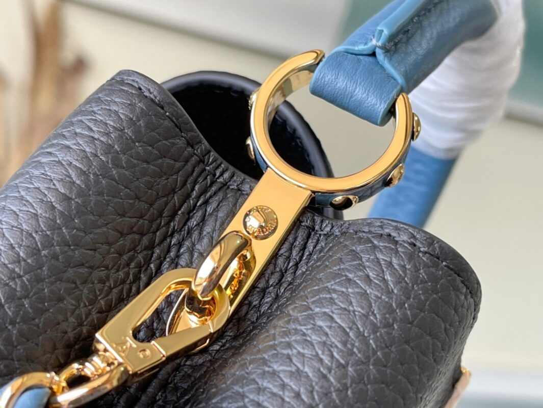 Top original single M59653 Mini 2022 Spring Series Capucines Mini Handbag uses Taurillon leather to render the color of the season, and then connects the shoulder strap with soft leather and metal chain weaving, showing the brand’s exquisite ingenuity. Dimensions: 21 x 14 x 8 cm