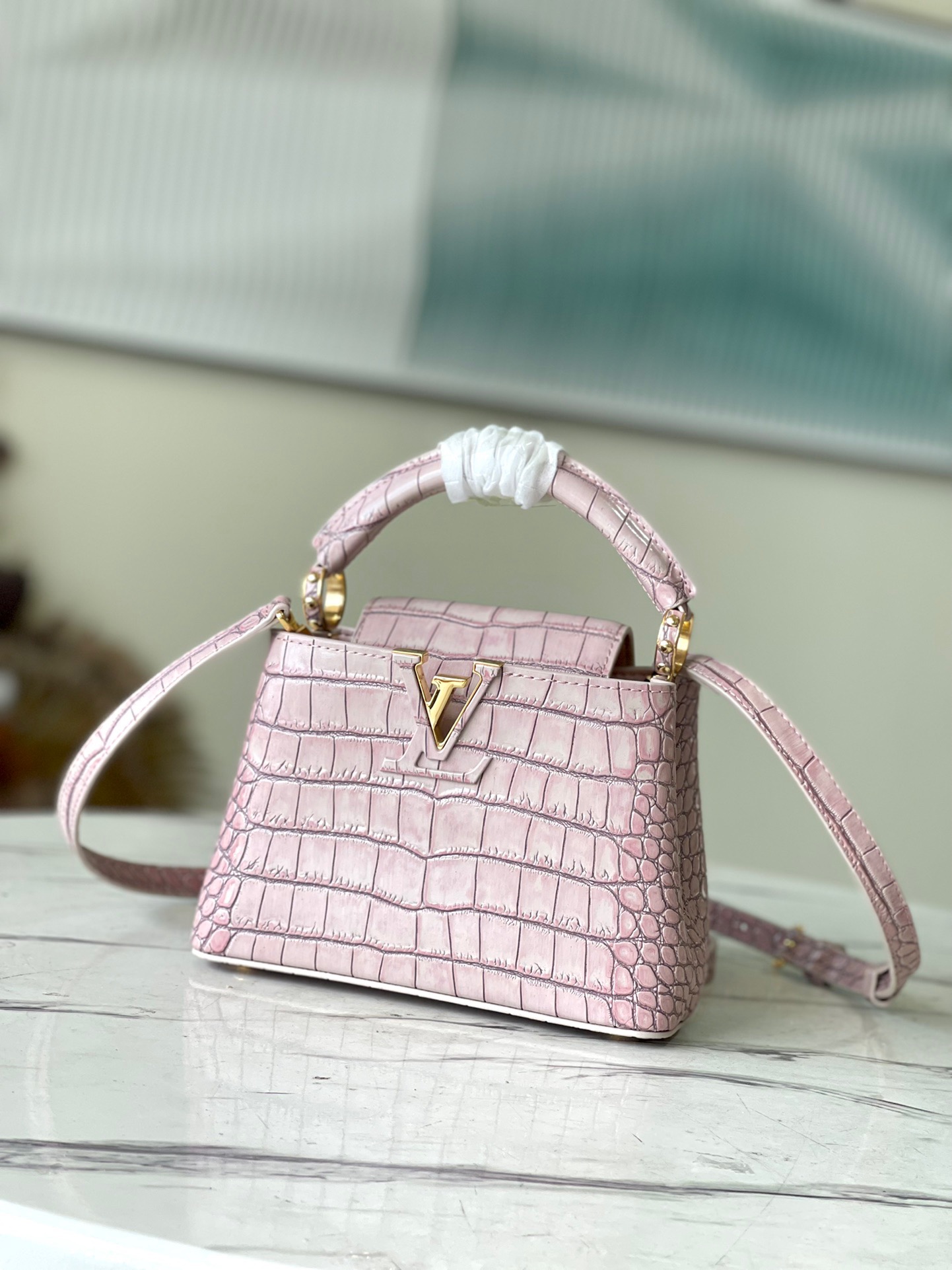 Louis Vuitton Capucines Mini Handbag in Pink Crocodile Pattern