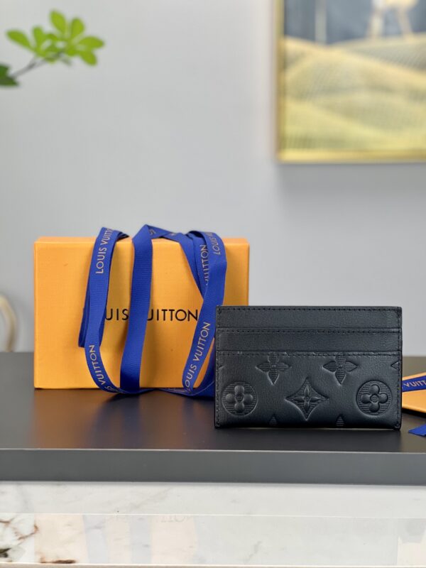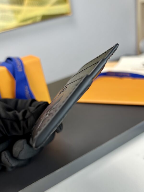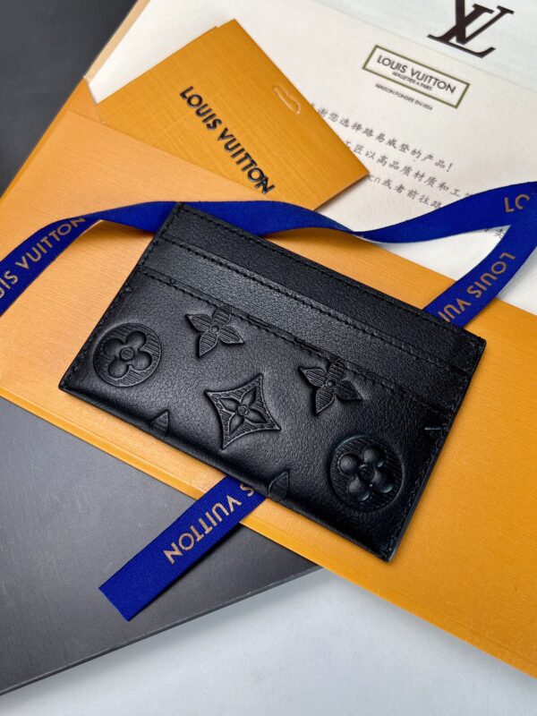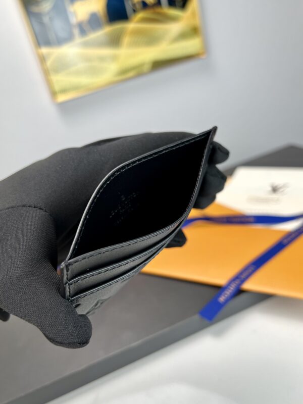 Embossed Black This card holder in new Monogram Eclipse coated canvas is sleek and stylish, and compact enough to slip easily in your pocket. Features a central pocket and four slots for credit cards, air and train tickets, and business cards. Dimensions: 11 x 7 x 1.5 cm (L x H x W)