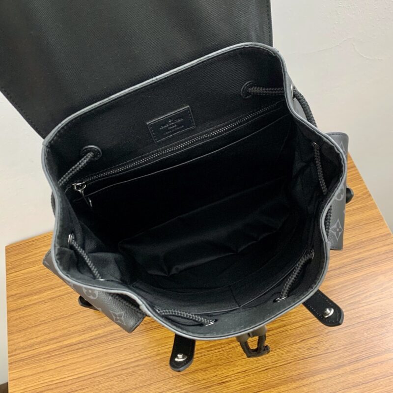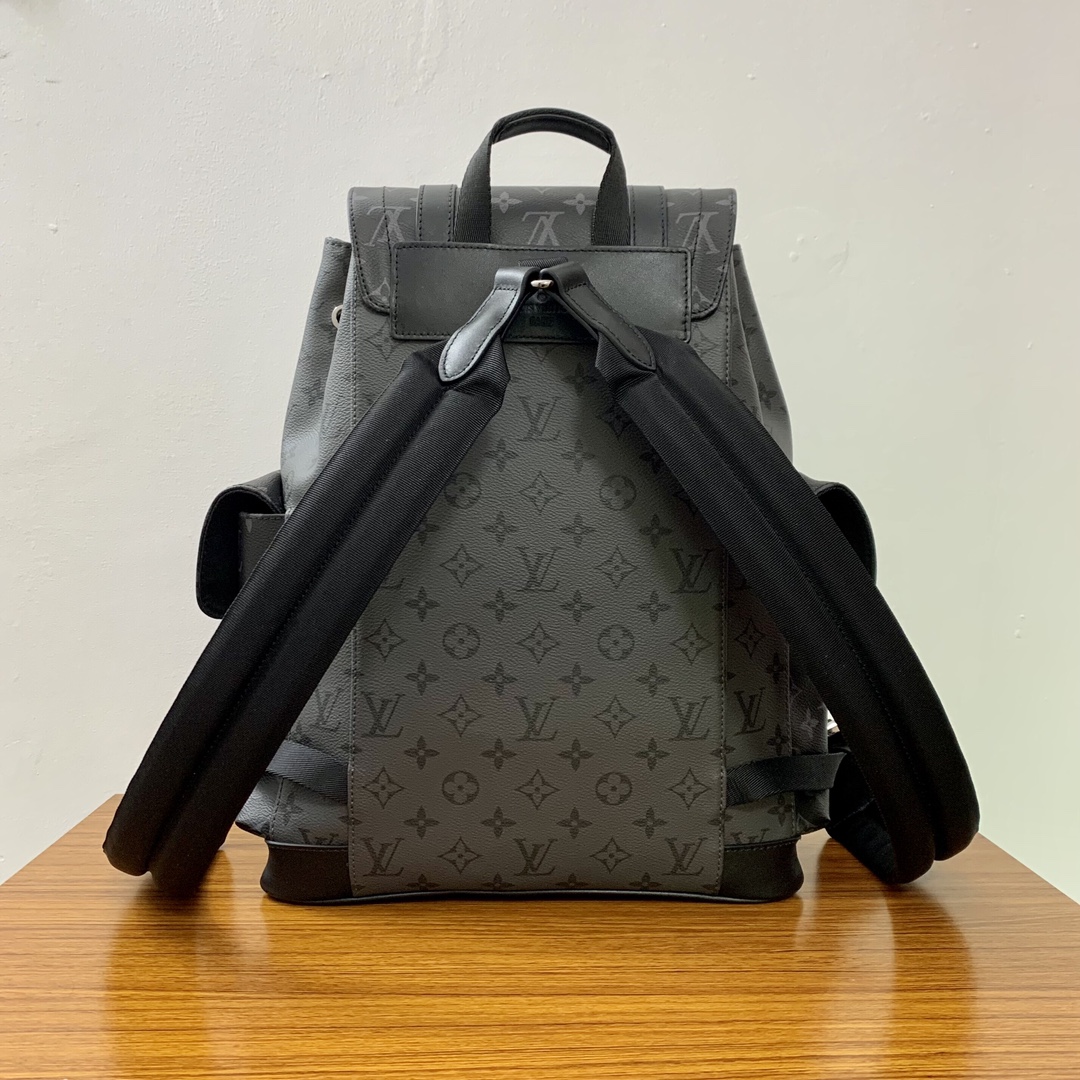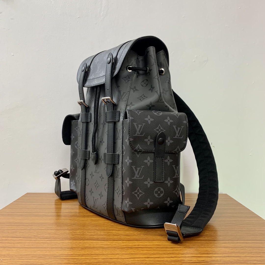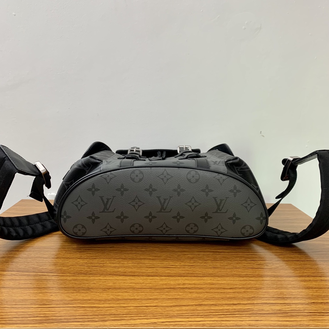 The Christopher Small Backpack combines Monogram Eclipse Reverse canvas with leather trim for the rugged feel of a mountaineering bag in a smaller size. Side pockets provide easy access to essentials, and the leather flap with snap studs keeps it secure.Dimensions: 32 x 39 x 12 cm (length x height x width)
