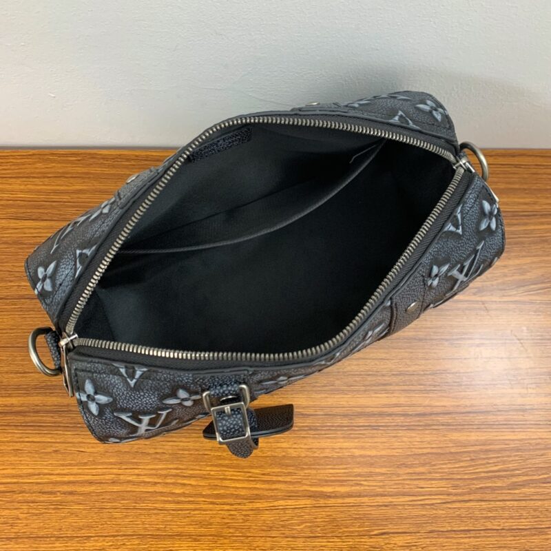 The City Keepall bag in faded-effect leather embossed and printed with the Monogram motif. The leather side pockets and Louis Vuitton signature leather nameplate are inspired by the classic elements of the Keepall travel bag, and the main compartment can accommodate daily needs, making it a trendy choice for everyday travel.Dimensions: 27 x 17 x 13 cm (length x height x width)
