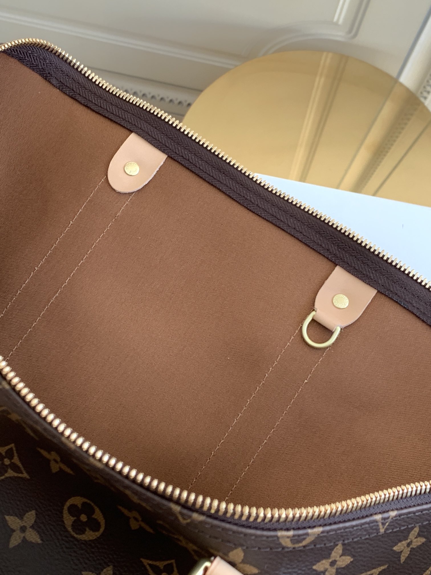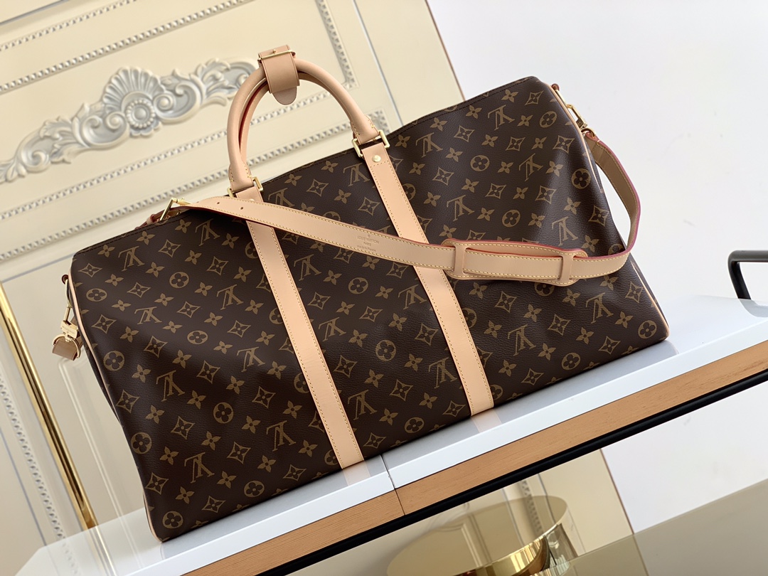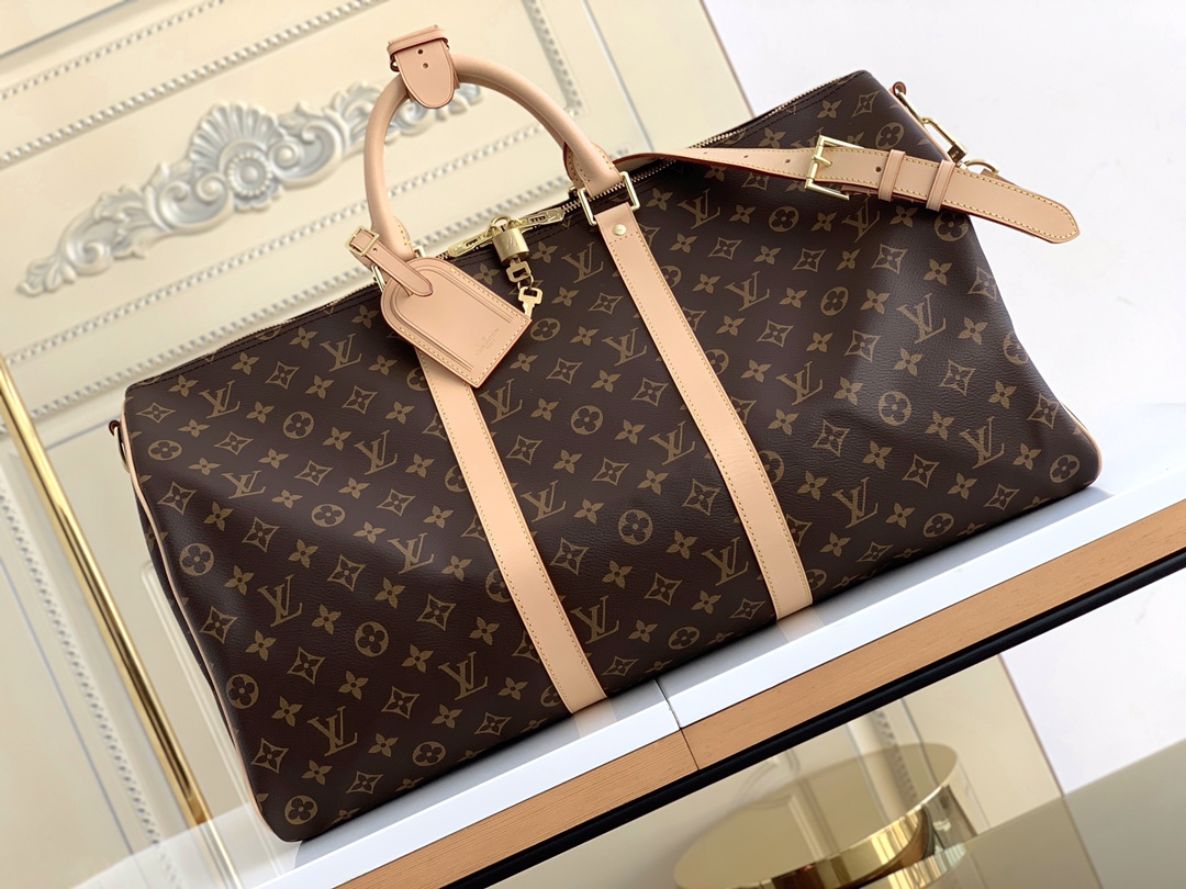 Launched in 1924, the Keepall collection is the modern ancestor of the handbag. Soft and roomy, it’s crafted from Monogram canvas with a double-zip closure and a removable name tag. Dimensions 50 x 29 x 22 cm