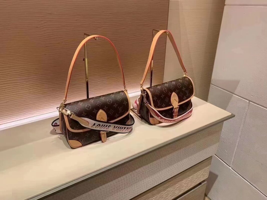 This Diane handbag is equipped with a leather shoulder strap (can be carried under the armpit) and an embroidered shoulder strap (can be worn across the shoulder) and can be removed. The capacity is enough for daily use to hold the largest mobile phone without any pressure. The belt-style buckle is a decoration, but it is actually a magnet to open and close. Detailed features – 25 × 9 × 15CM