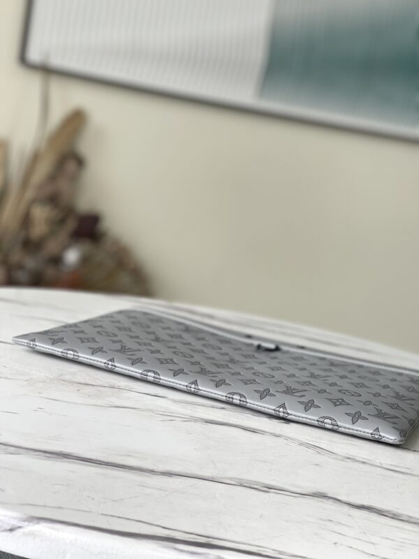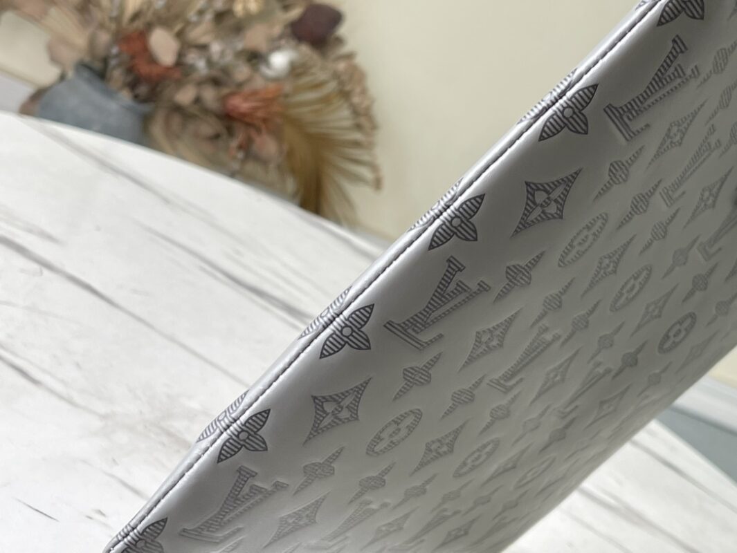 Gray Clutch Discovery Pochette The Discovery Pochette is crafted from exceptionally soft Monogram Shadow calfskin and embossed with the signature Monogram pattern, making it an elegant choice for carrying documents and other personal items with a clean, clean shape. Equipped with a D-ring, it can be carried alone or packed into other bags.Size: 36x25x2cm,