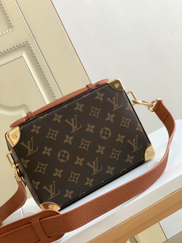 The Handle Trunk handbag brings together the square shape, metal corners and rivets, inheriting the classic Louis Vuitton trunk design. The top leather handle imparts a retro vibe, and the detachable leather shoulder strap provides comfortable shoulder carry. Dual zipper pulls easily open the ample interior to hold a phone and wallet. Dimensions: 21.5 x 15 x 7cm