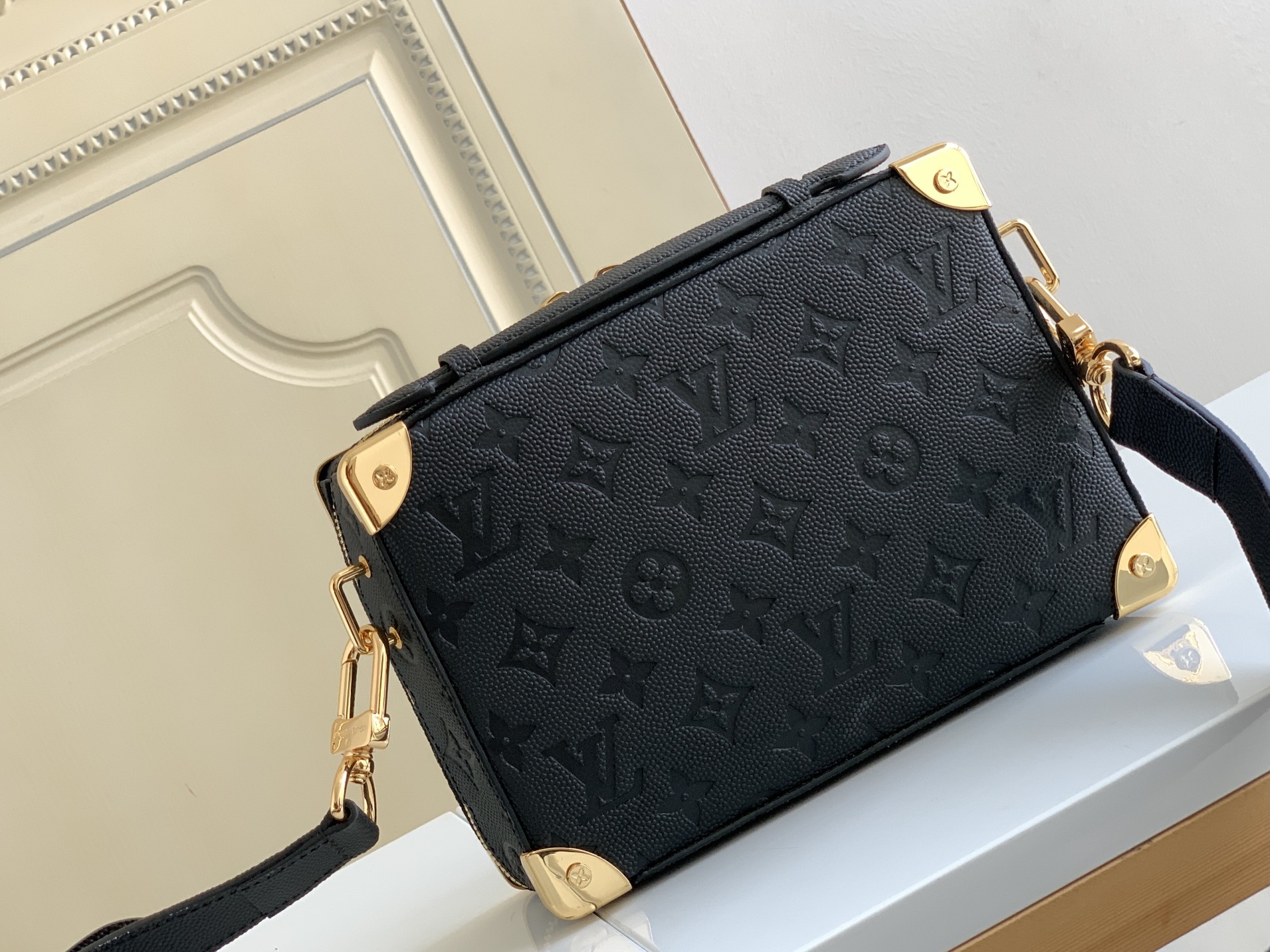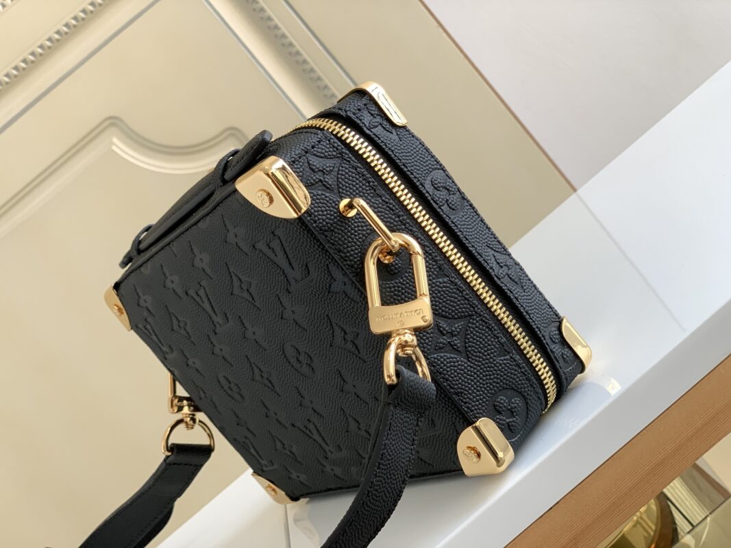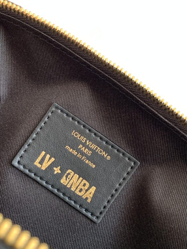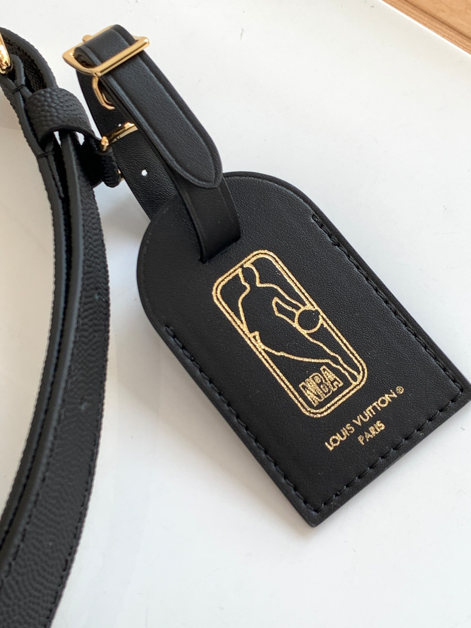 The NBA teamed up to create the Handle Trunk, a boxy shape in basketball-textured Monogram embossed grain leather. Studs and metal corners follow the label’s heritage, while the NBA logo is subtly detailed with a detachable leather shoulder strap. Dimensions: 21.5 x 15 x 7 cm