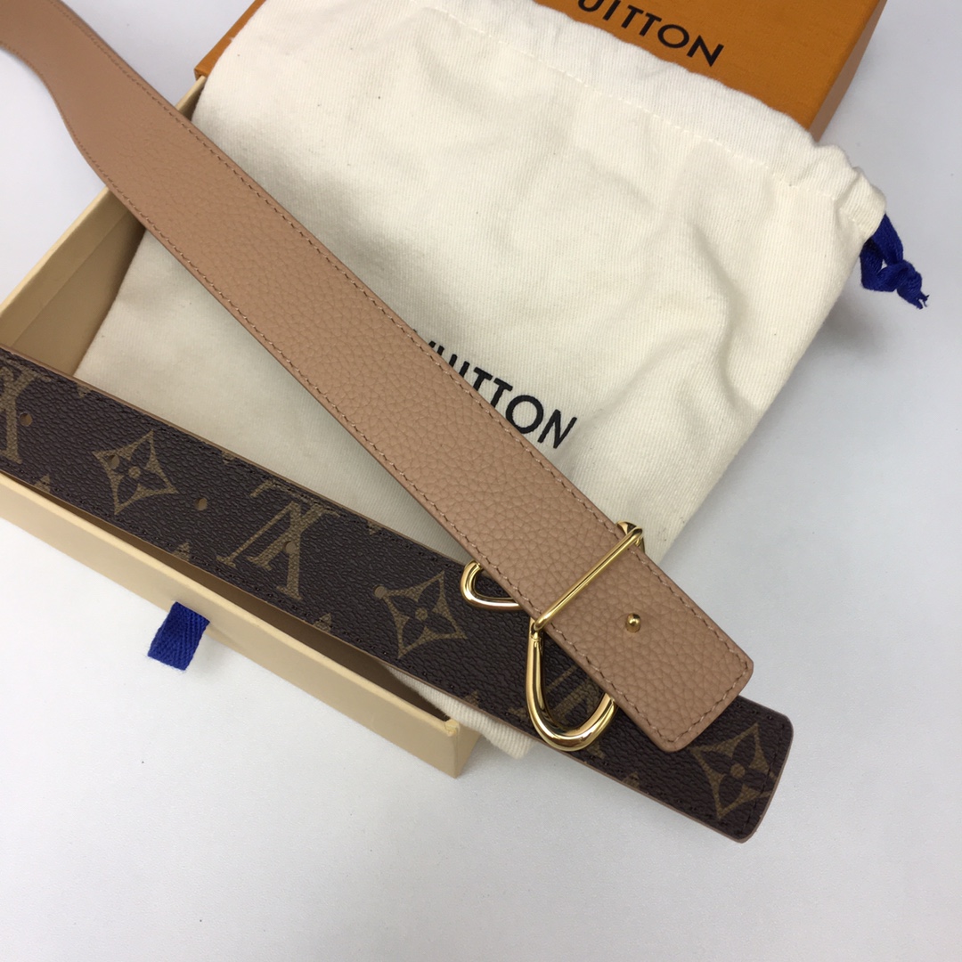 Louis Vuitton women’s belt. Width: 3cm. Custom-made classic canvas fabric with soft calfskin bottom, new mold-opening type buckle. Double-sided use. 32080363