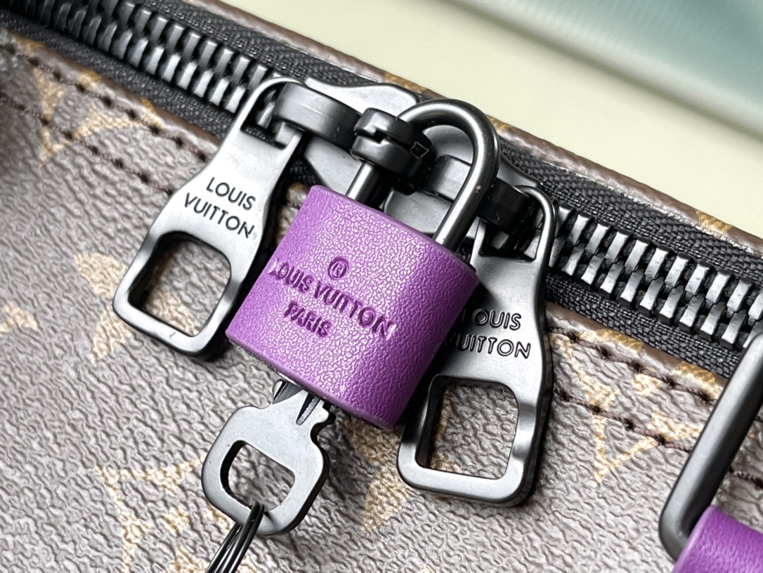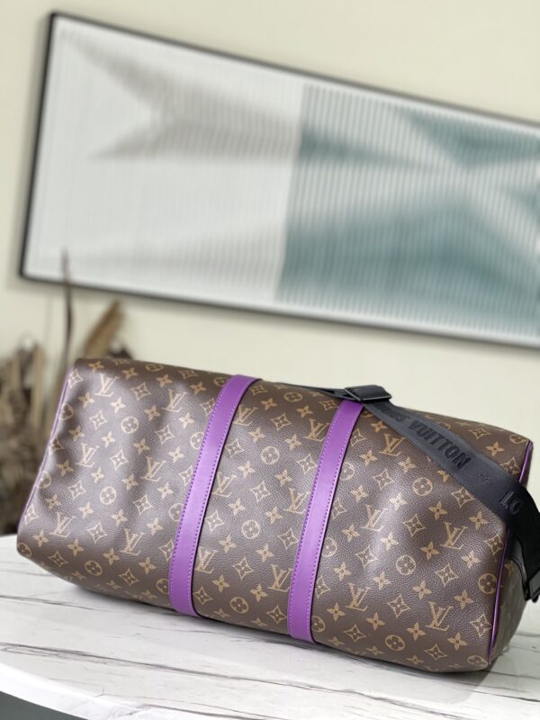 In the summer of 2022, the classic Keepall travel bag is rendered in bright colors with leather trim, continuing the signature brushstroke of designer Virgil Abloh. Monogram Macassar canvas is cut for plenty of room, perfect for weekend excursions. Dimensions: 50 x 29 x 23 cm