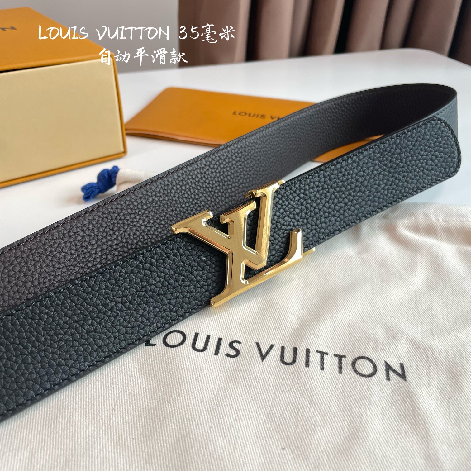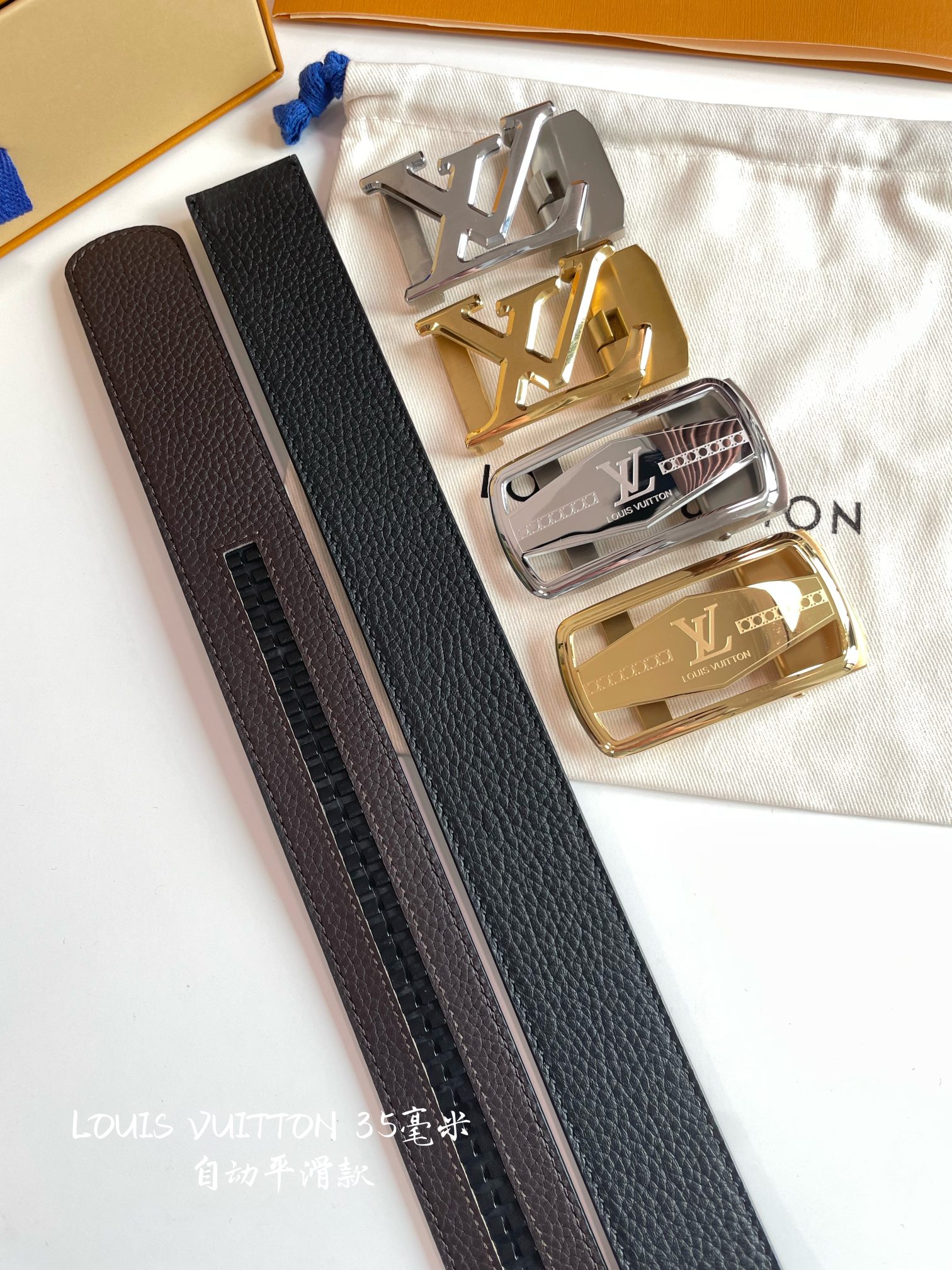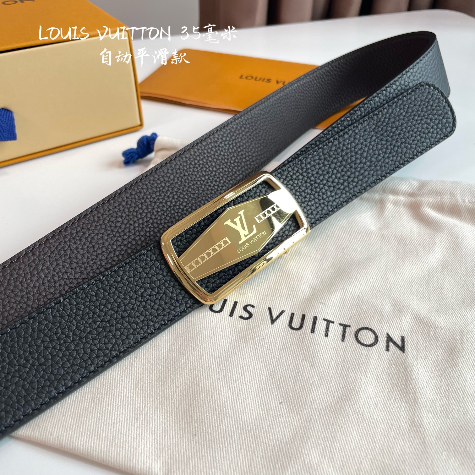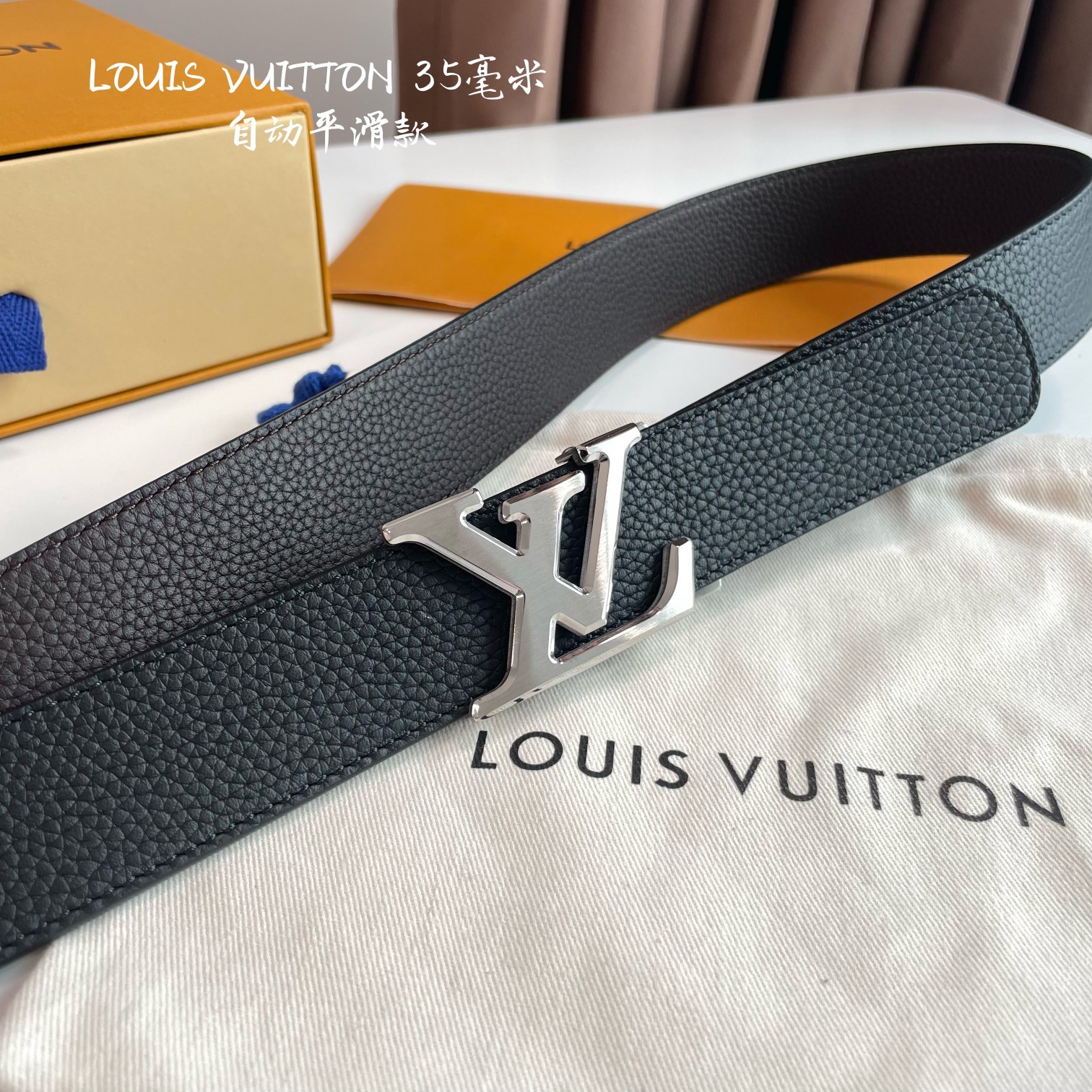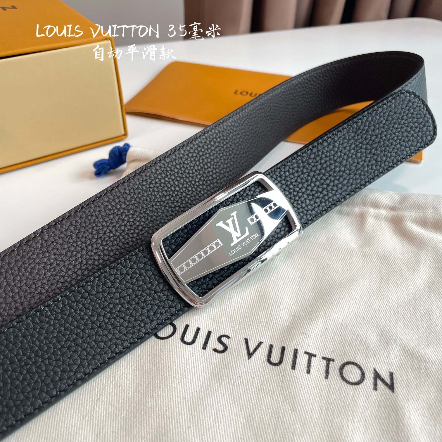 LOUIS VUITTON – Automatic smoothing width 35MM fine steel hardware with Italian imported leather belt. Adjustable length.