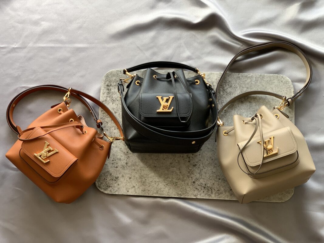 Lockme Bucket Bag The Lockme bucket bag in grained calfskin features a twist lock on the front pocket. This bag with curly proportions is soft and comfortable to carry. A removable and adjustable strap in leather means it can be worn over the shoulder and across the body, while a removable top handle enables hand and elbow carrying 23 x 23 x 16CM