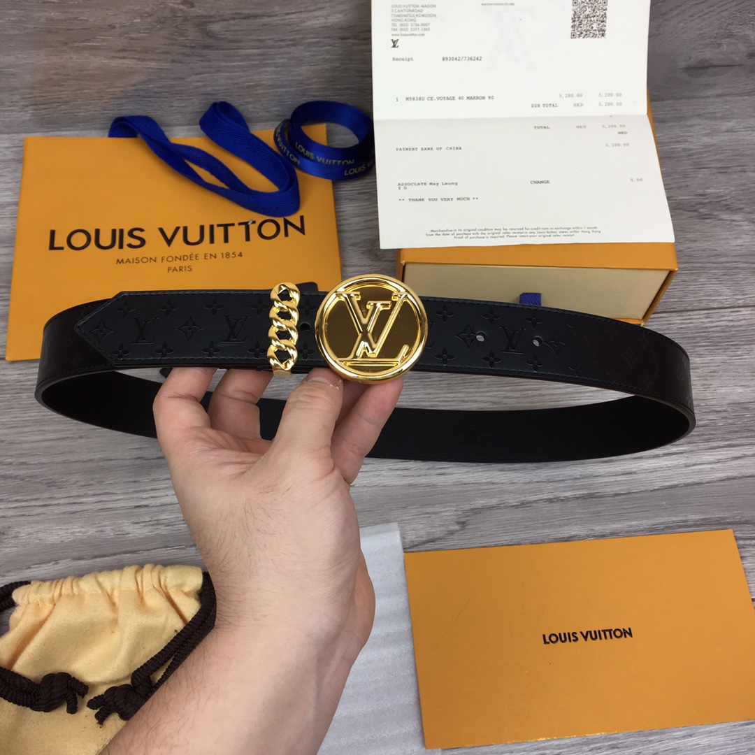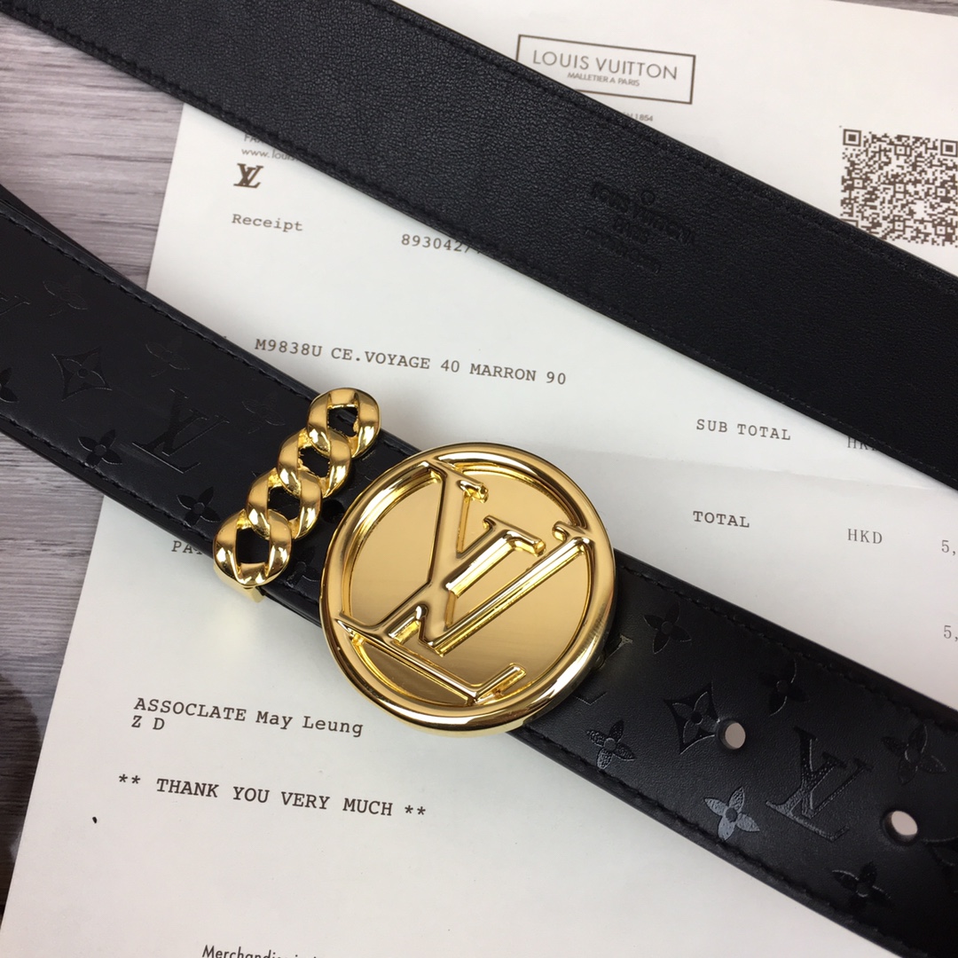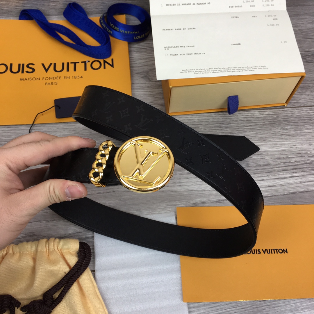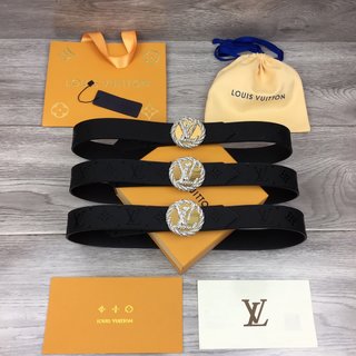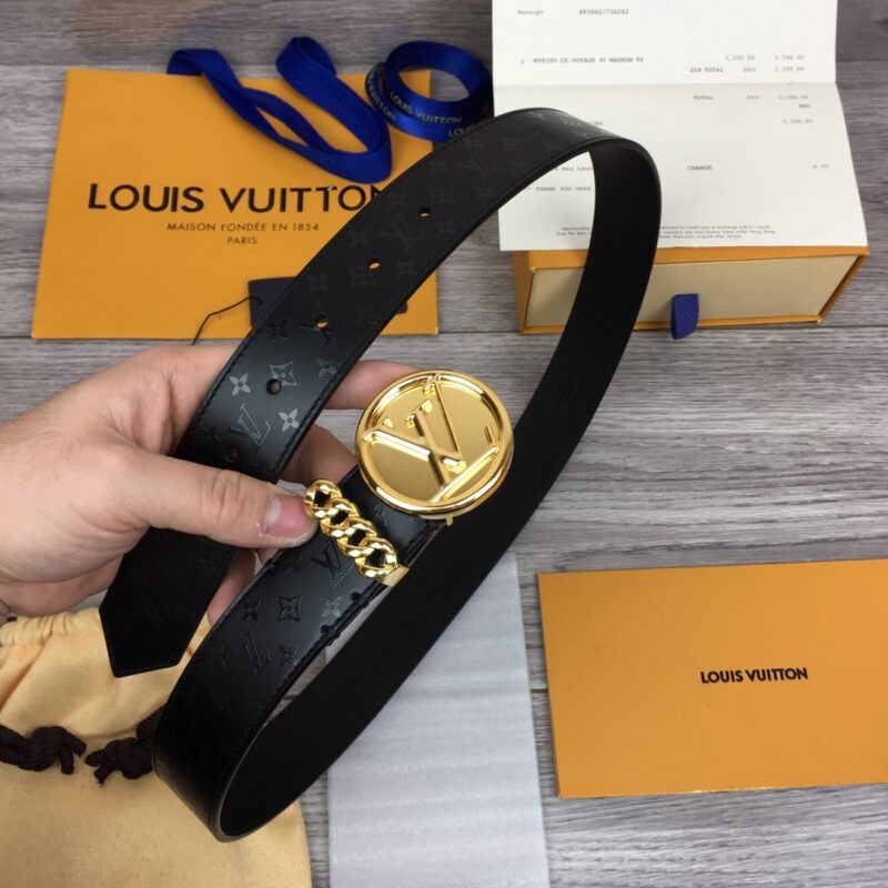 Louis Vuitton original single belt. Width 35mm. This belt is made of calfskin and crystal print pattern. Brand new round letter logo buckle. Chic chain ring ring design. 3508024