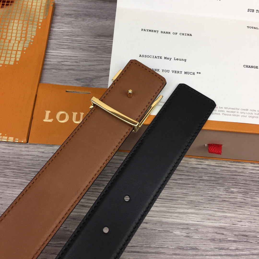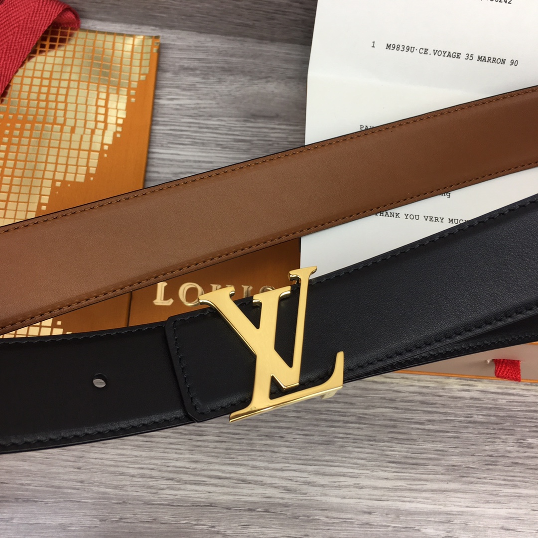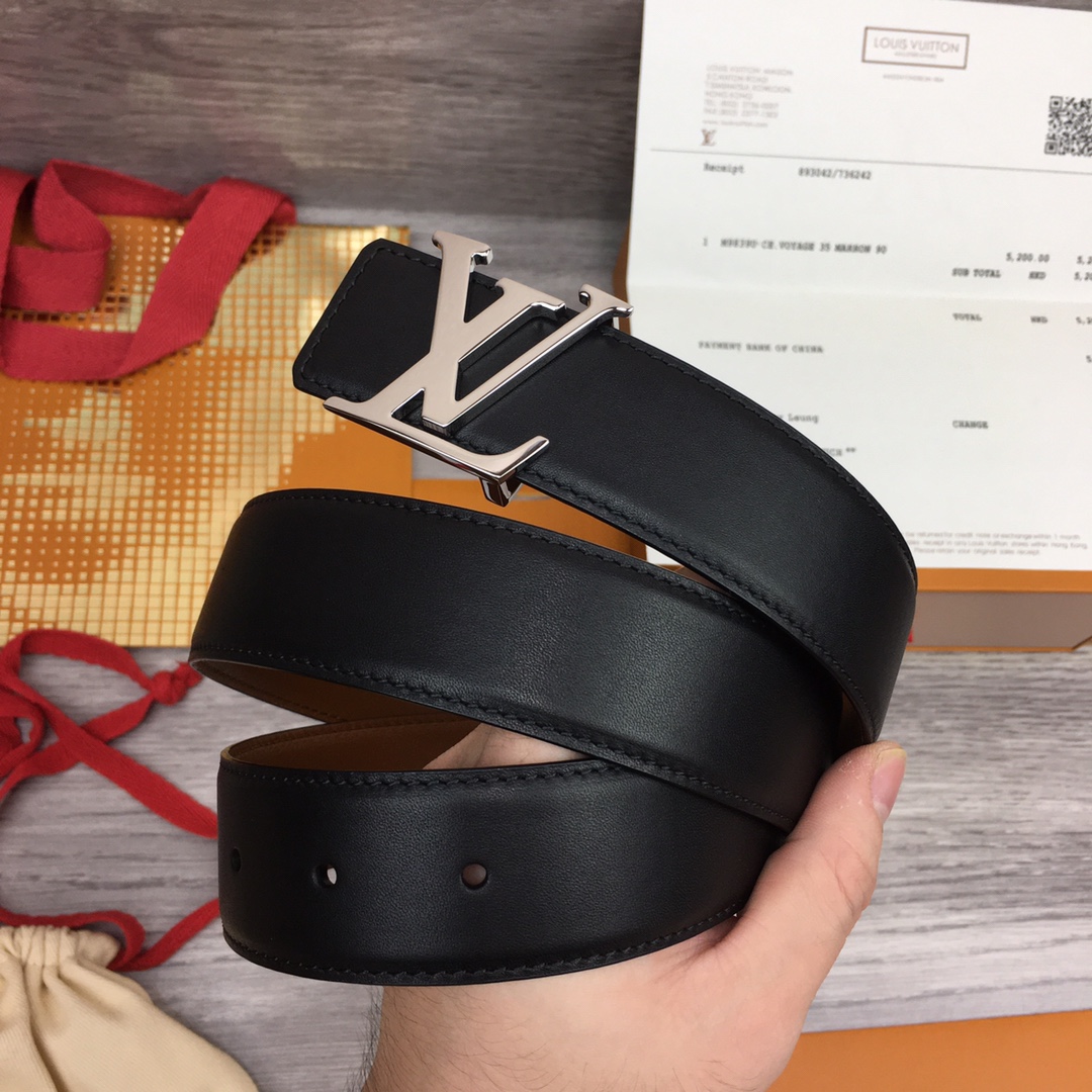[Men’s model] Louis Vuitton new belt. Width 3.5cm. Double-sided imported soft calfskin, set off the exquisite character letter buckle. Fashionable and versatile.