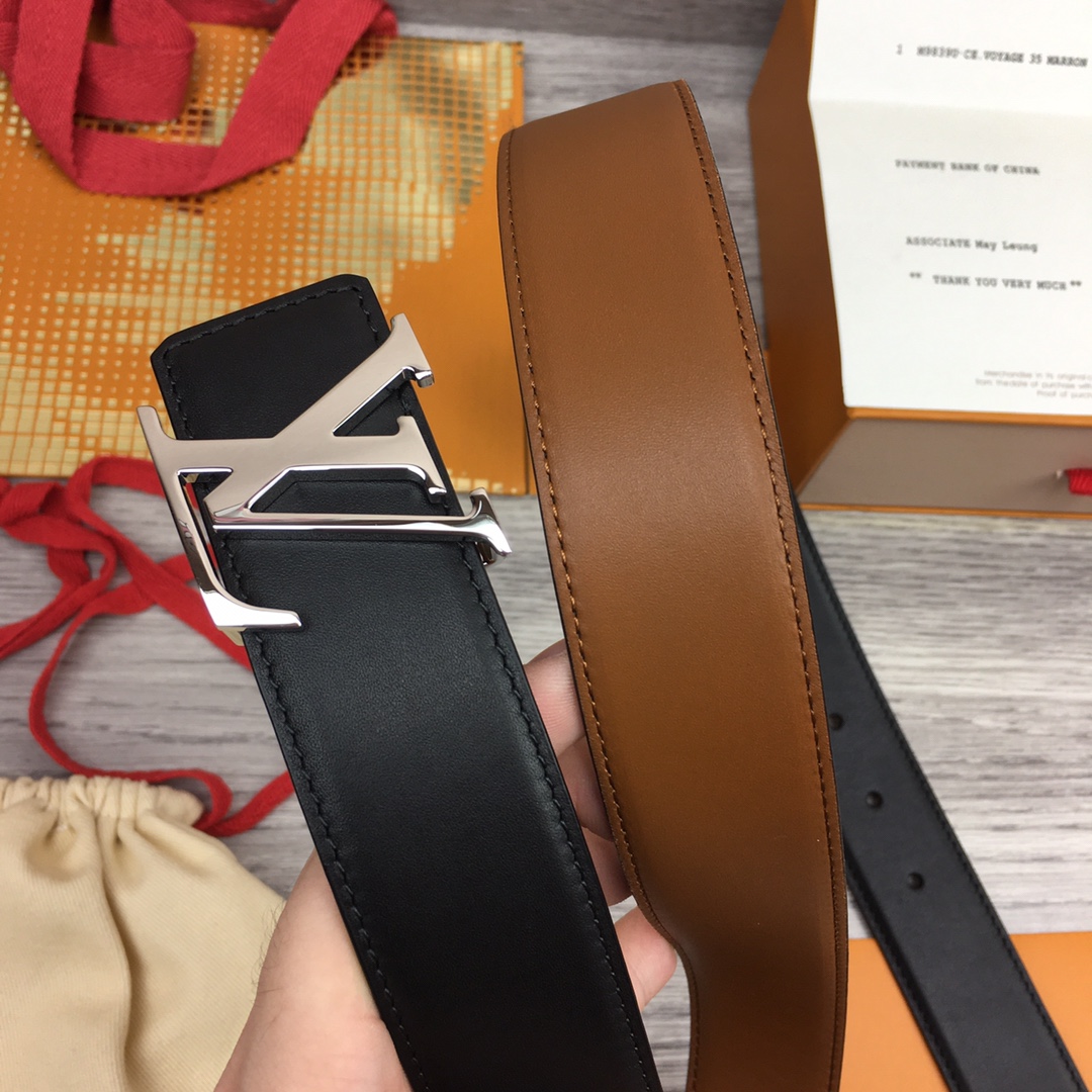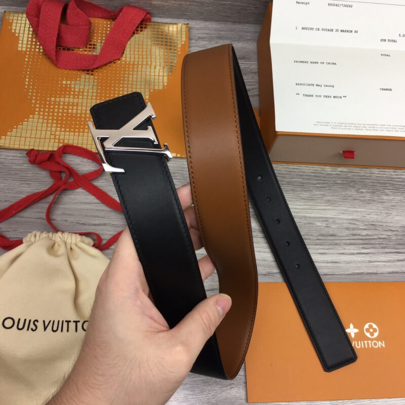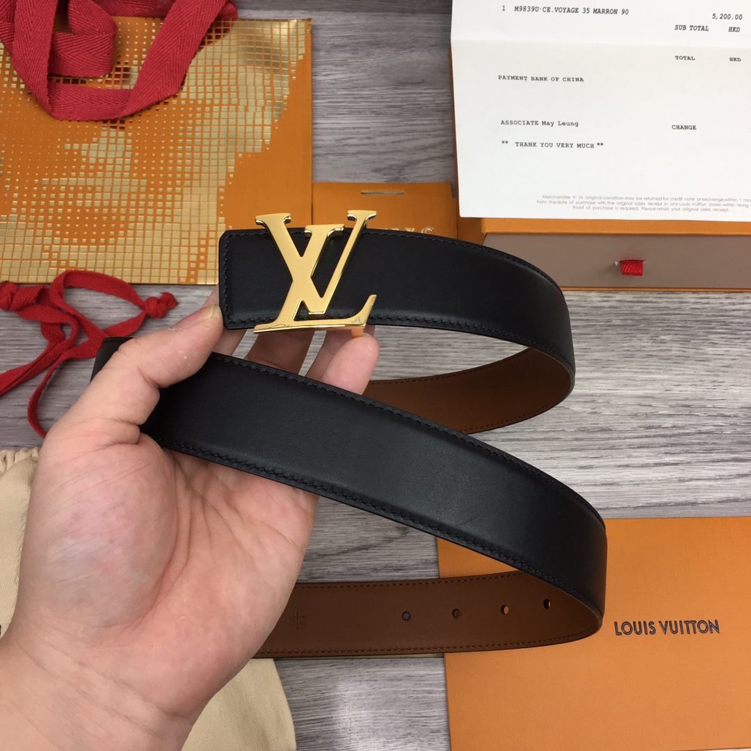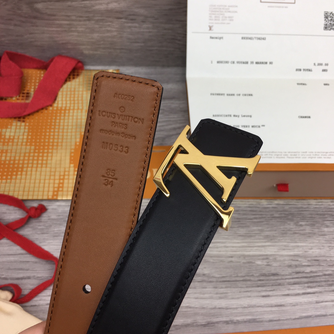 [Men’s model] Louis Vuitton new belt. Width 3.5cm. Double-sided imported soft calfskin, set off the exquisite character letter buckle. Fashionable and versatile.